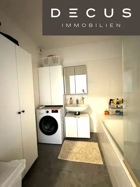 Im Badezimmer besteht die Möglichkeit, eine Waschmaschine am Siphon des Waschbeckens anzuschließen. Die vorausgesetzten Abzweigungen am Siphon sind vorhanden!