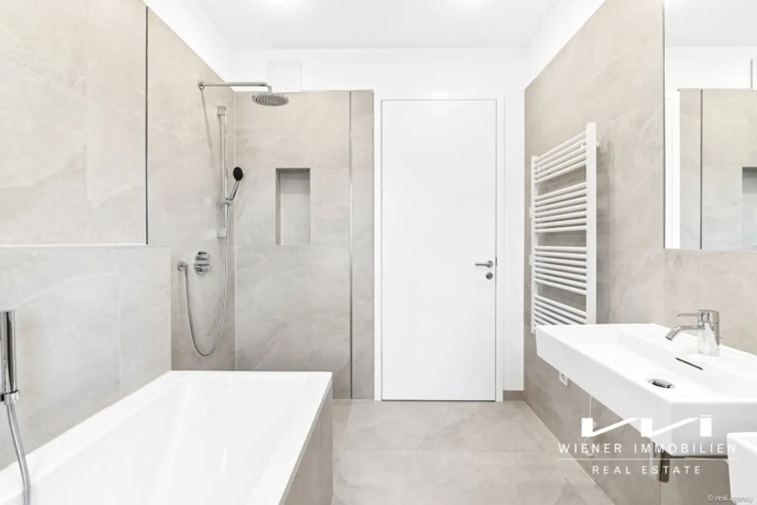 + Feinsteinfliesen in den Nassräumen