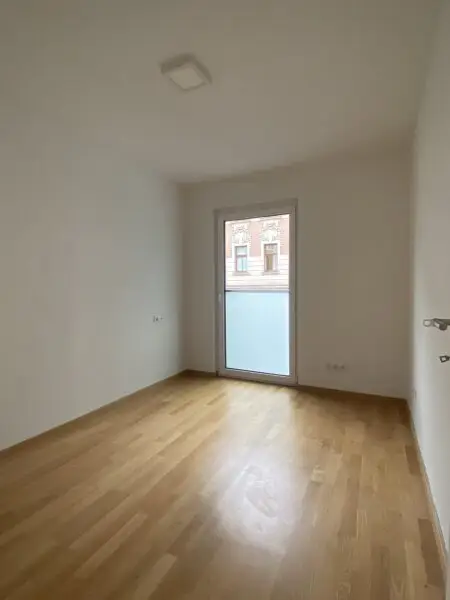 Die Wohnung gliedert sich in eine Küche, die vom Wohnzimmer räumlich abgetrennt ist, ein Vorzimmer, einen Schlafraum und ein Bad mit Dusche und getrenntem WC. Die Wohnung verfügt über ein Kellerabteil. Alle Räume sind vom Vorzimmer zentral begehbar. Im Badezimmer ist ein Waschmaschinenanschluss vorhanden.