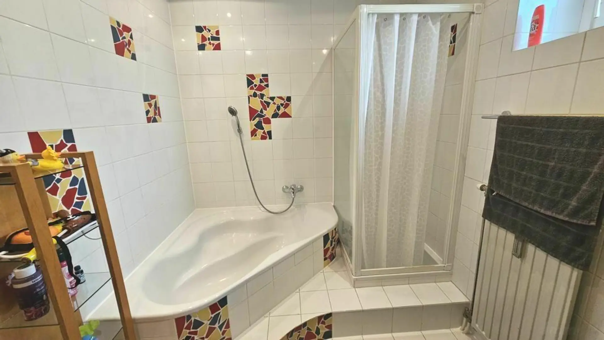 - Geräumiges Badezimmer mit Fenster, Eckwanne & Dusche
