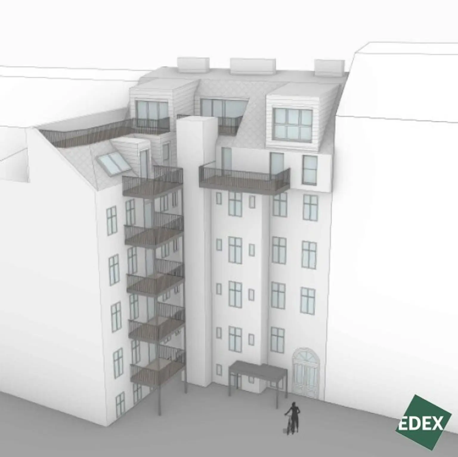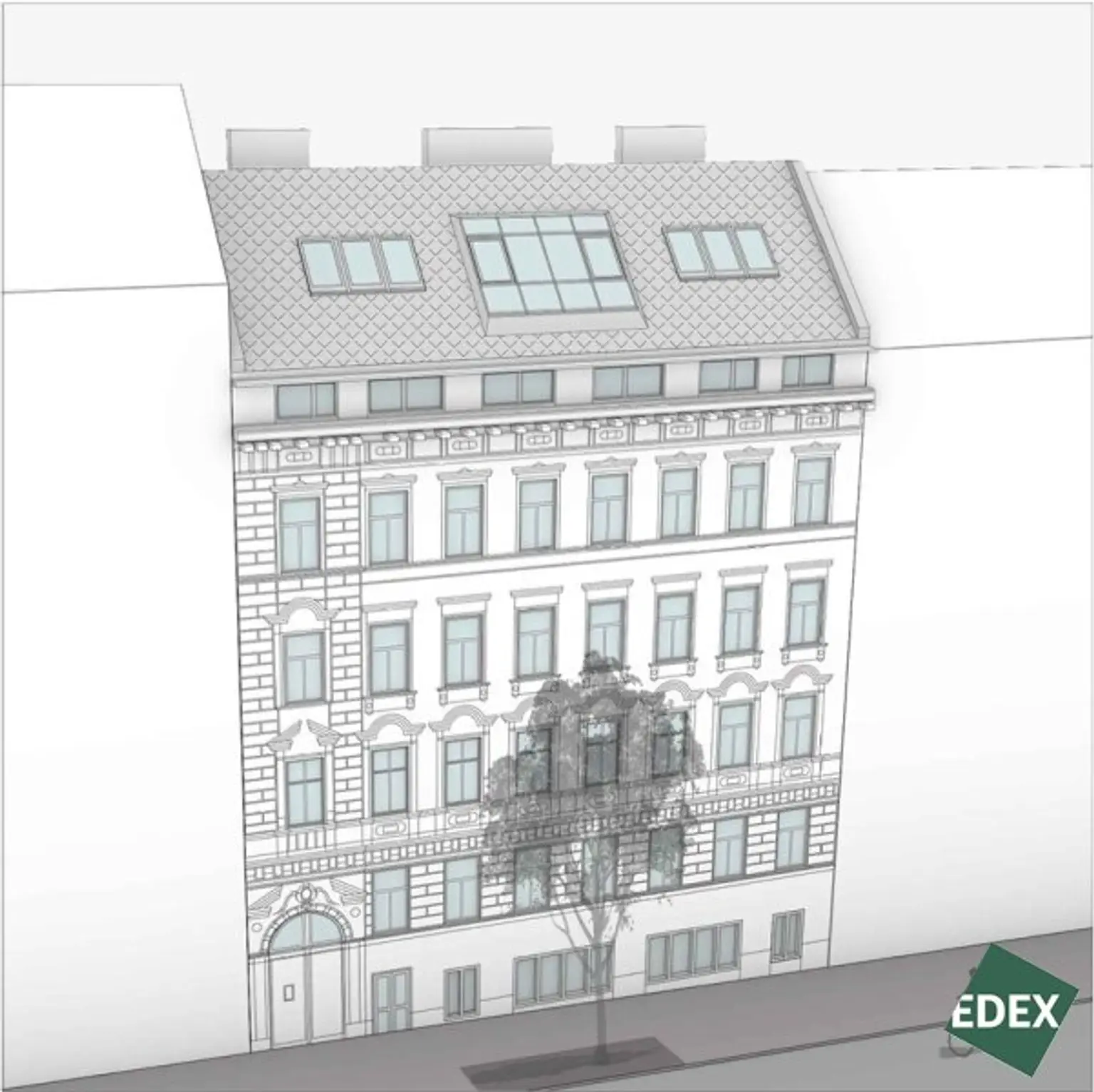 Zum Verkauf gelangt ein bewilligter Dachgeschossausbau mit 4 Wohnungen mit Freiflächen und attraktiven Grundrissen in unmittelbarer Nähe zum Josef-Strauß-Park im 7. Bezirk. Der baubewilligte Rohdachboden befindet sich in einem repräsentativen Mittelzinshaus mit schön gegliederter Straßenfassade.