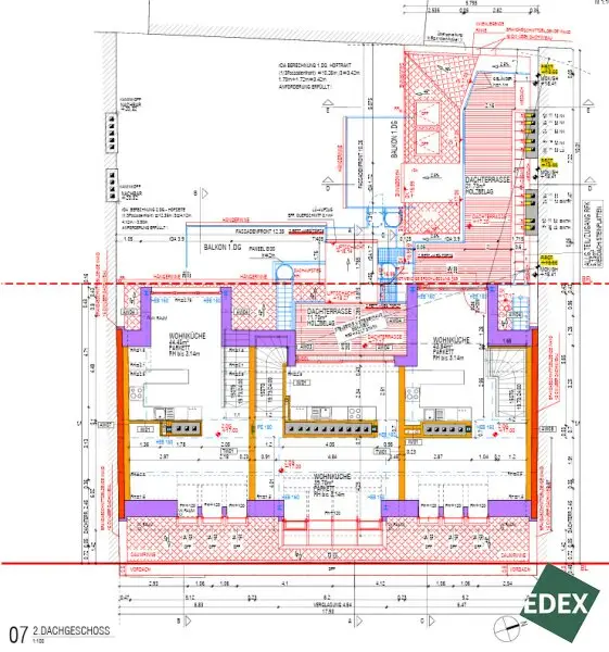 - Top 28: 98,77 m² + 10,80 m² Balkon + 1,46 m² Dachterrasse