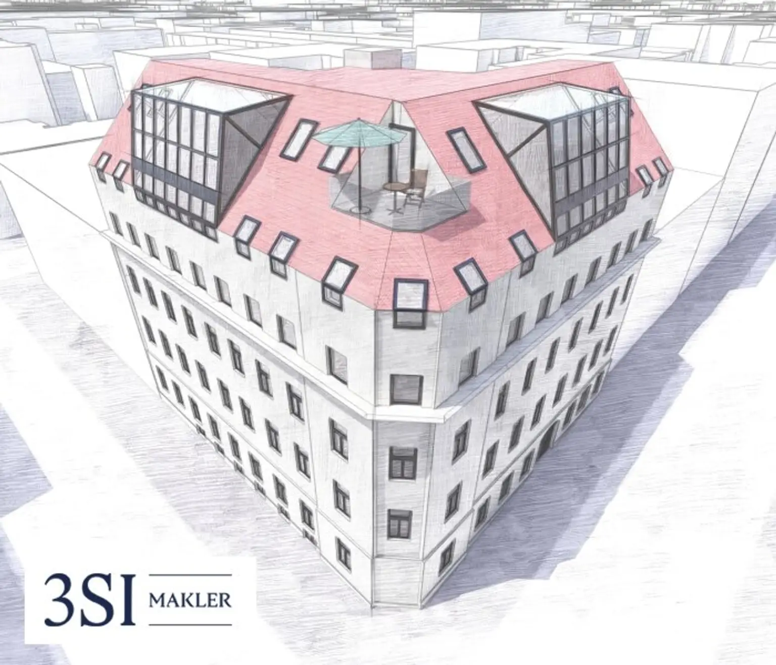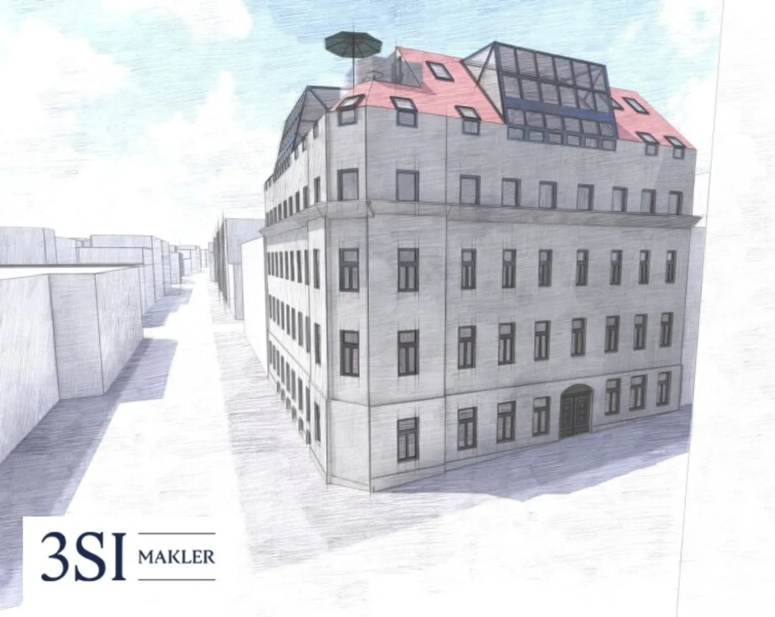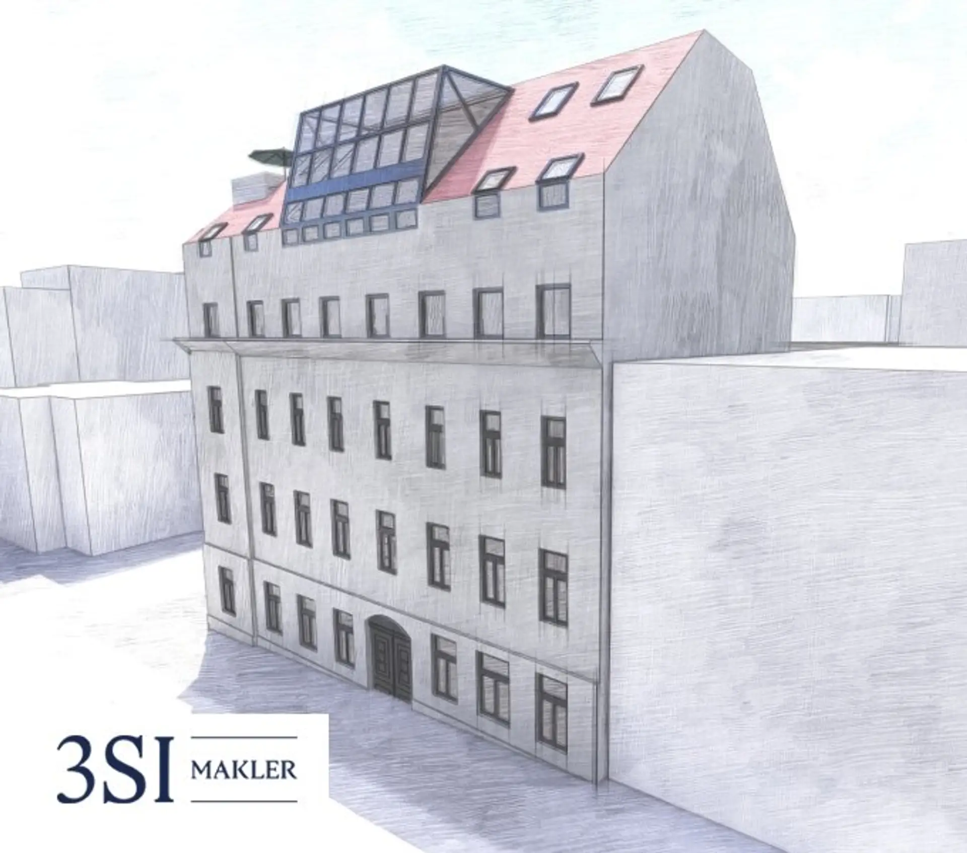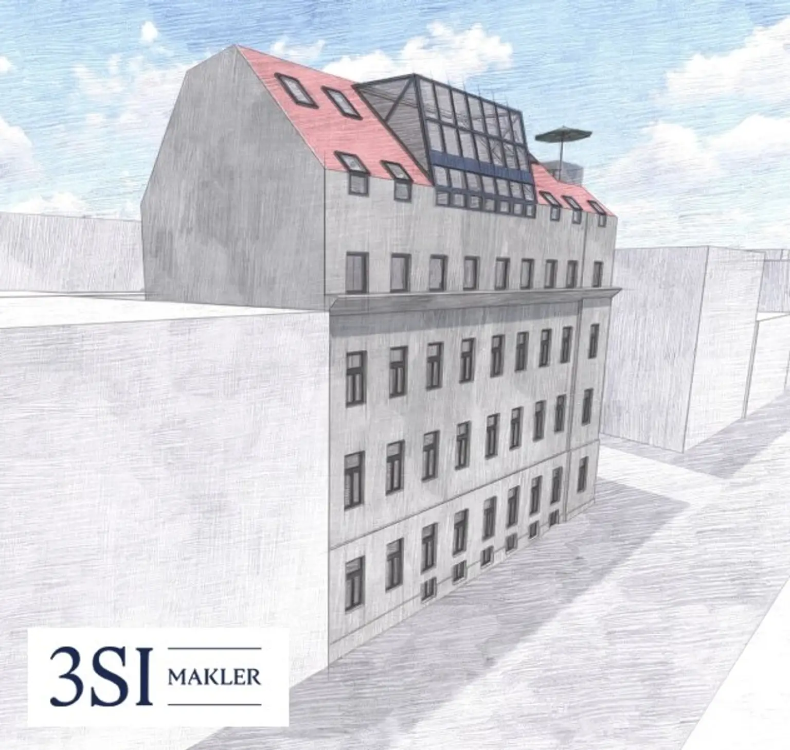 * baubewilligter Rohdachboden mit Entwicklungspotential von insgesamt 3 Stockwerken im Ausmaß von ca. 830 m²
