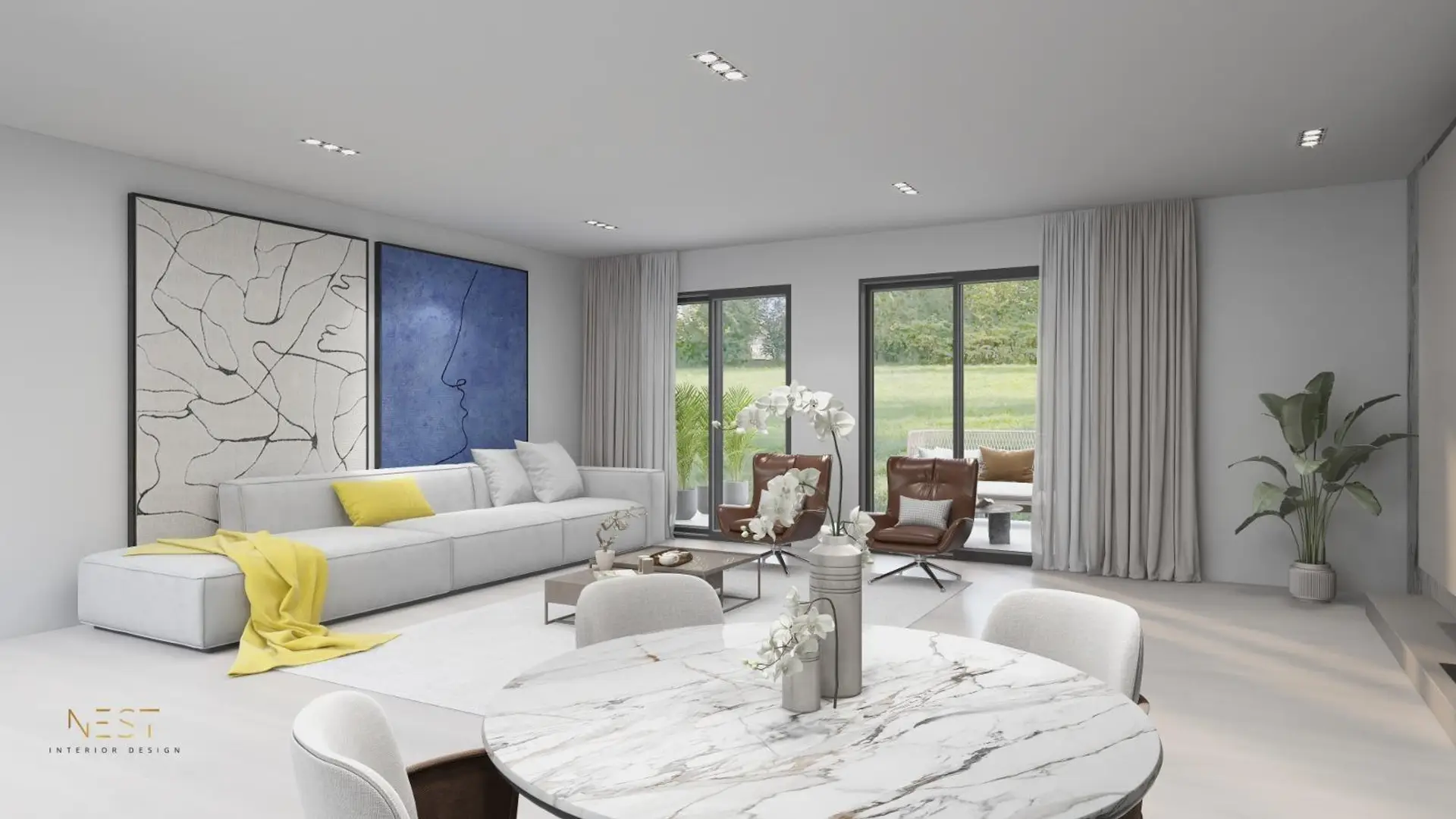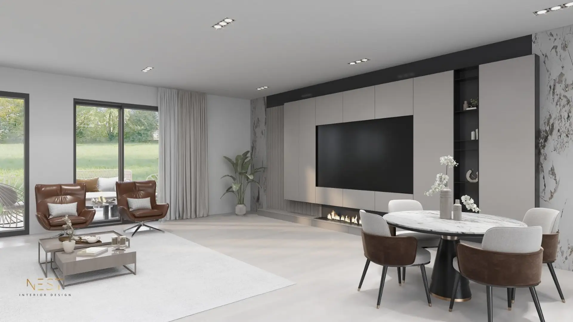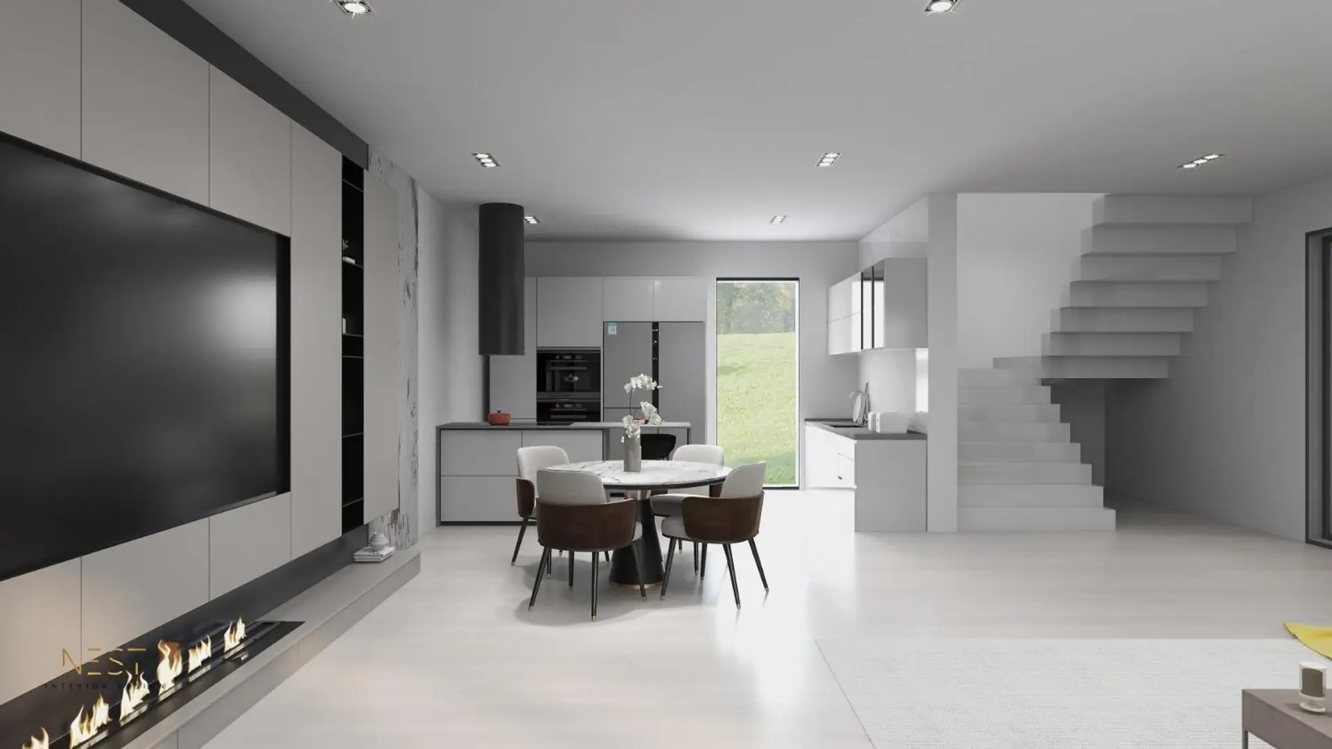 Erdgeschoss: ca. 60–70 m² Heller Wohn- und Essbereich mit direktem Zugang zur Terrasse und in den Garten