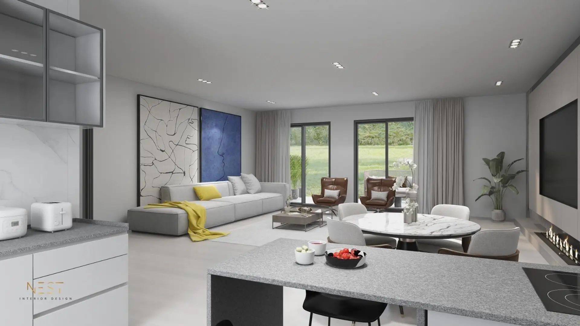 Die Aufteilung bietet optimalen Wohnkomfort für Familien und sorgt für eine klare Trennung zwischen Wohn- und Ruhebereichen.