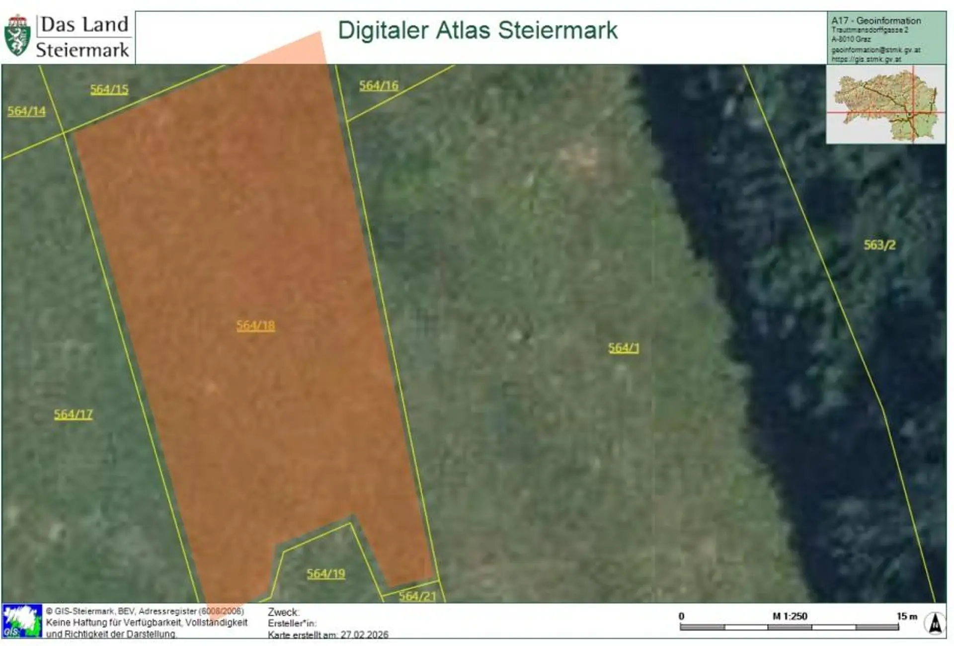 Das Grundstück weist eine Größe von ca. 629 m² Bauland auf, auf Wunsch können zusätzlich ca. 723 m² Freiland um € 50.000,- dazu erworben werden. Genießen Sie die Aussicht ins GRÜNE - in stadtnaher Umgebung! Das Grundstück ist als Bauland WA mit einer Dichte von 0,2 - 0,5 gewidmet. Laut Bebauungsplan sind symmetrische Satteldächer mit einer Dachneigung größer als 18 Grad erlaubt.