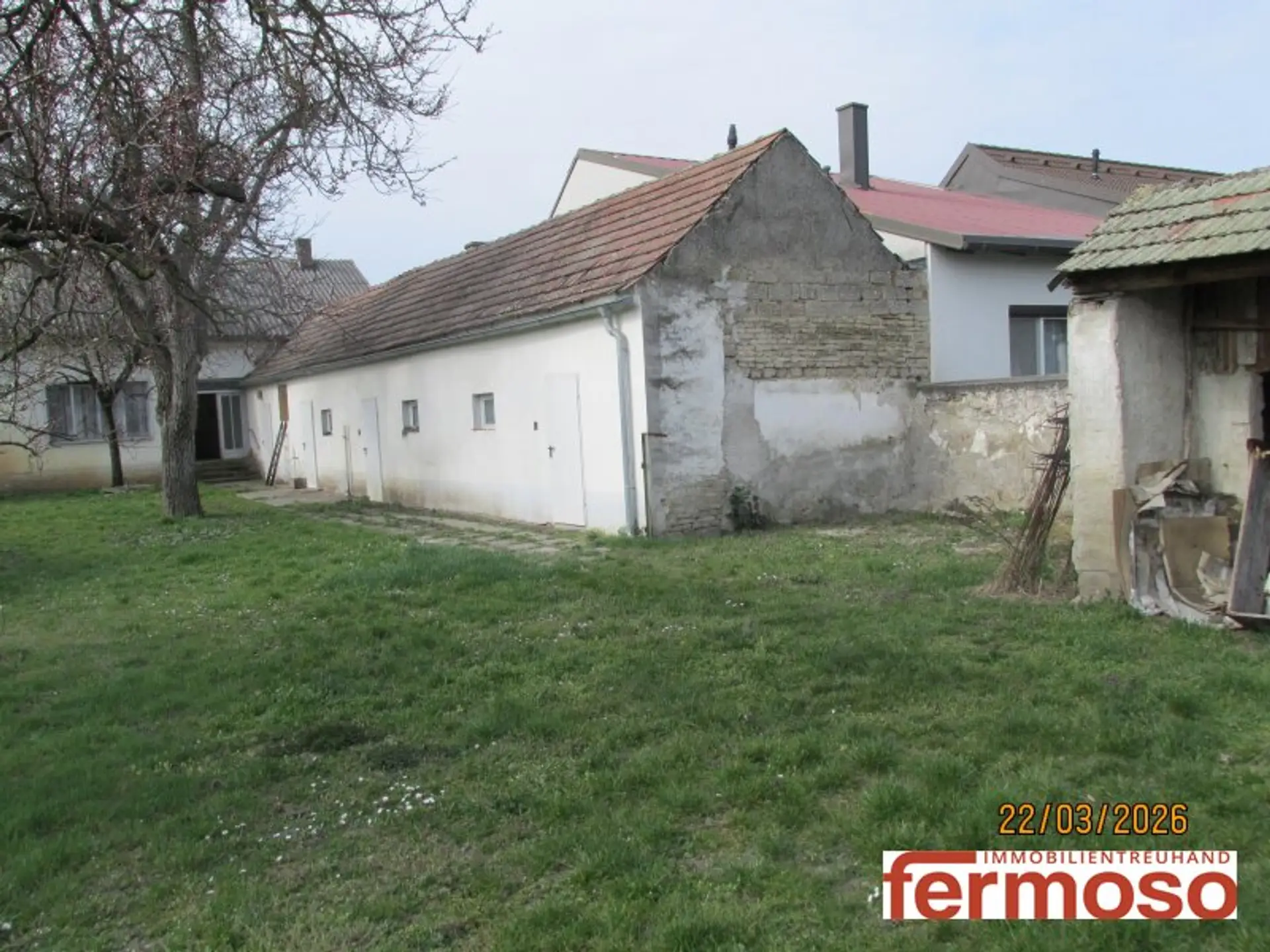 Auf dem Grundstück befindet sich noch ein altes Bauernhaus, benutzbar aber schon stark sanierungsbedürftig mit den Nebengebäuden, Kerngebiet Bauland, bebaubar zu 70% laut Verordnung.
