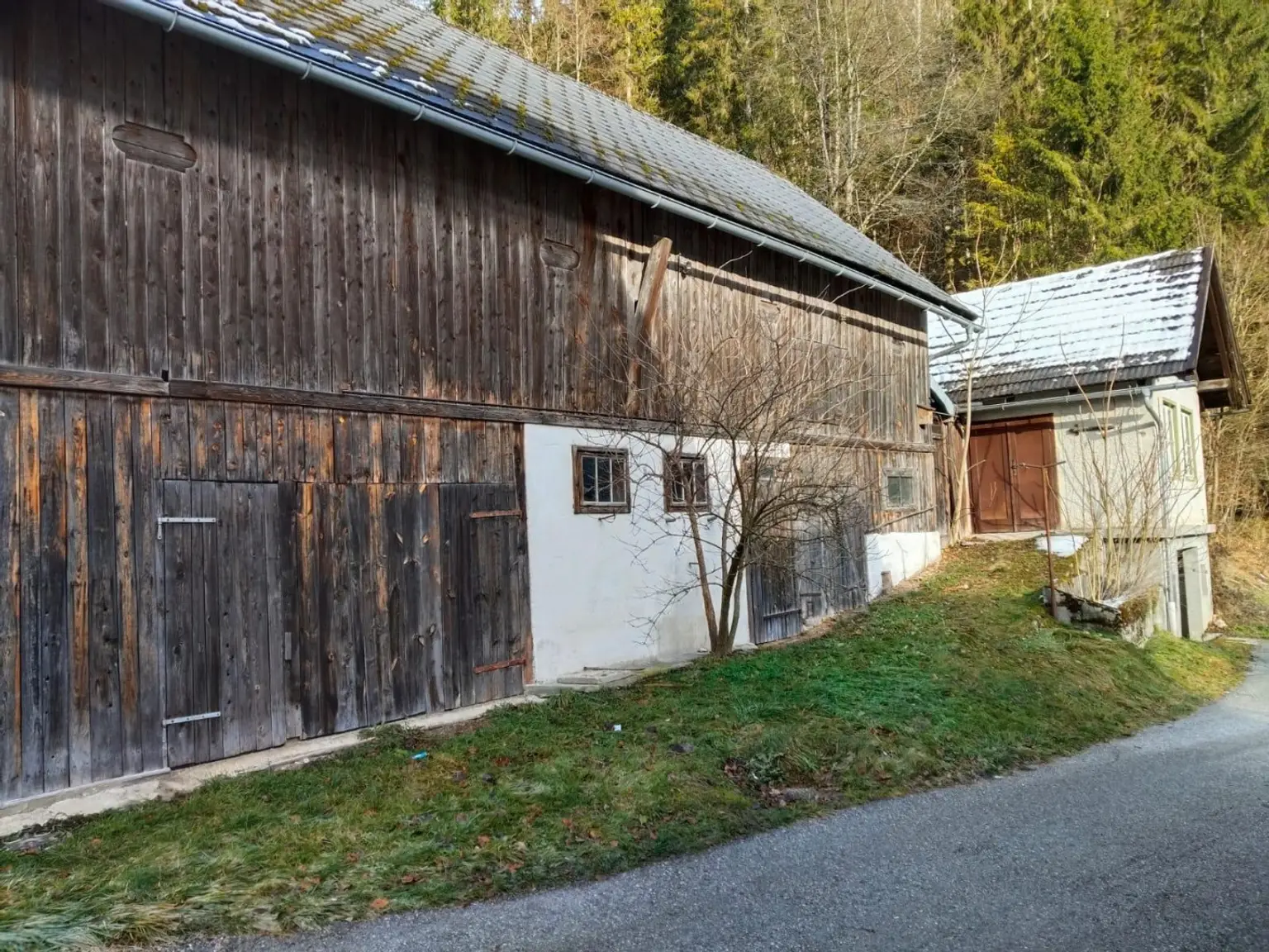 Sonnig gelegenes Grundstück (leichte Hanglage) mit ehemaligem Stadl samt Nebengebäude.