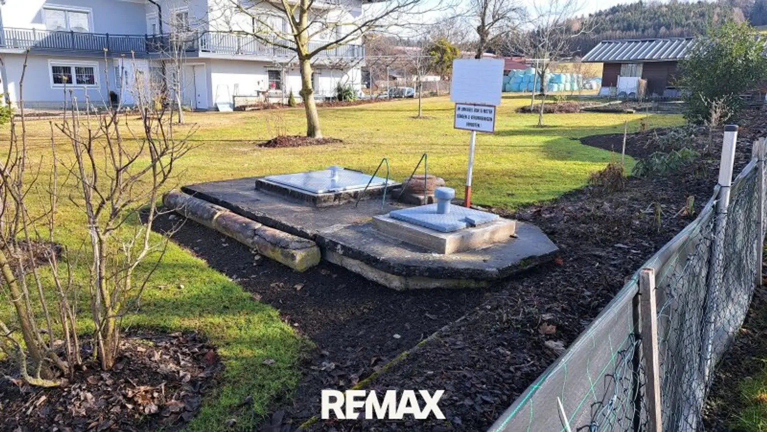 Kanal, Strom, Glasfaserkabel und Gasleitung liegen in der Strasse. Die Aufschließungskosten an die Gemeinde sind bezahlt.