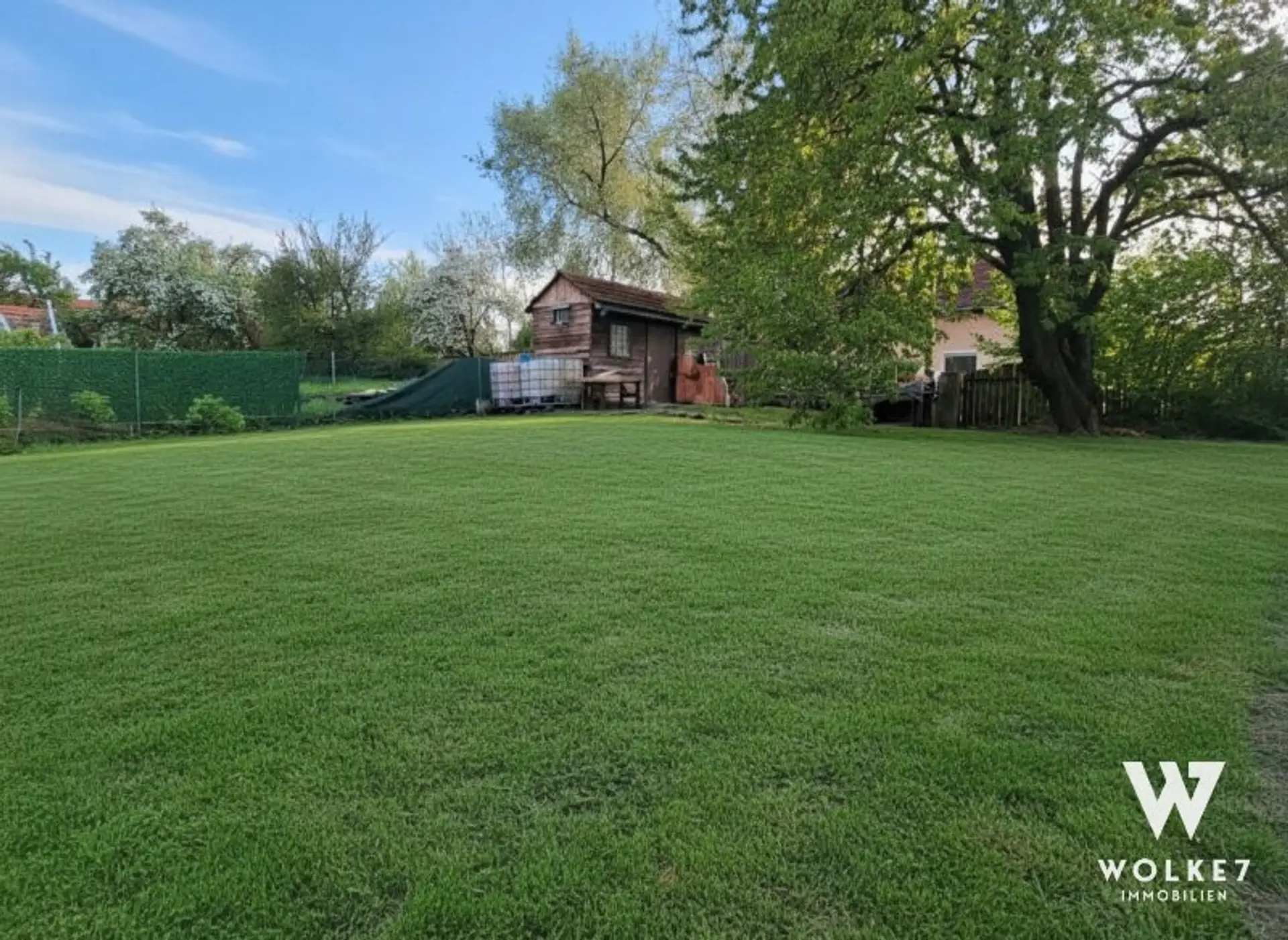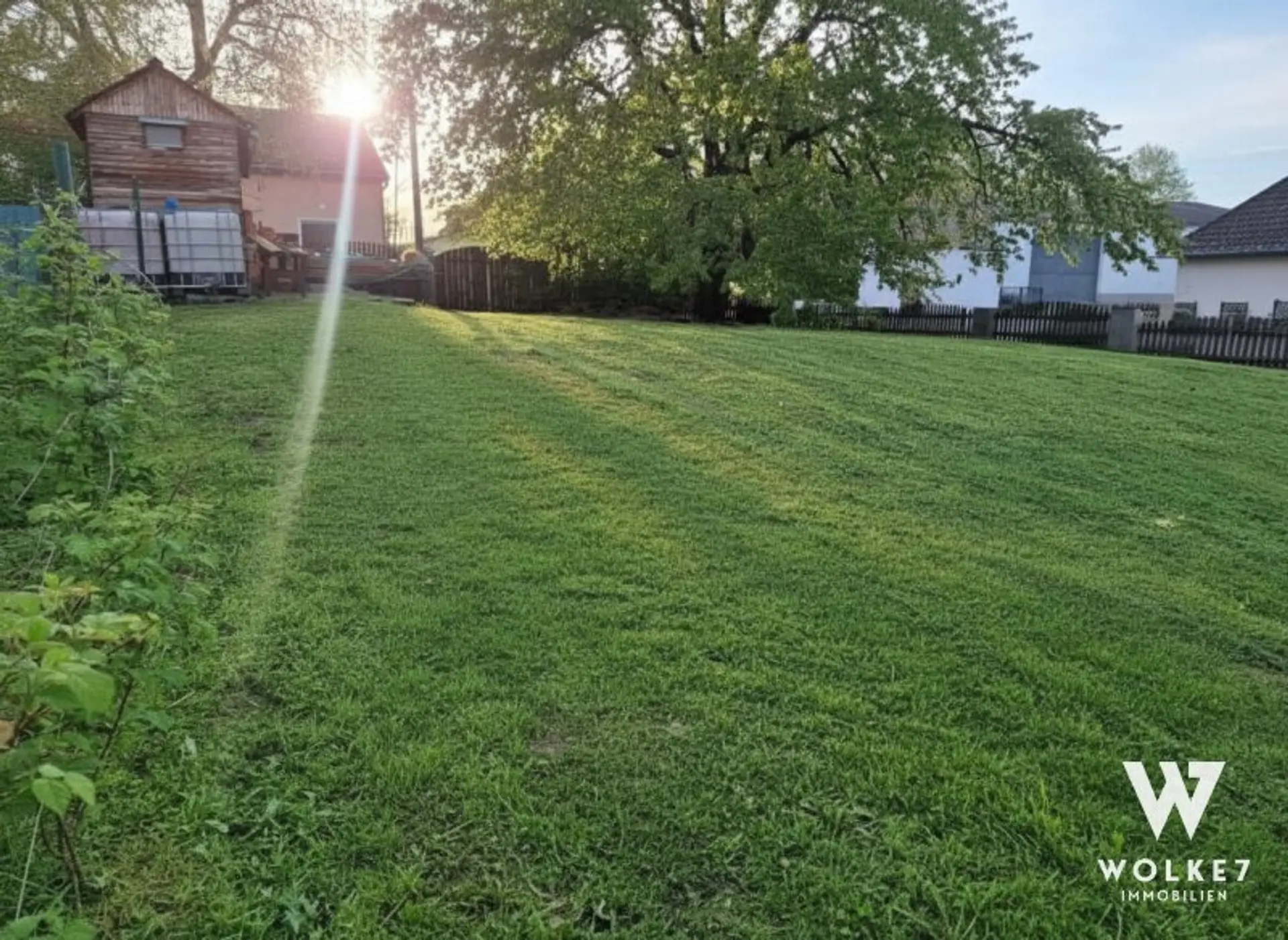 Das Grundstück ist rechteckig geschnitten (ca. 24,5 m × 17 m) und bereits mit einem Einfahrtstor ausgestattet. Auf dem Grundstück befinden sich zwei kleine Holzschuppen sowie ein wunderschöner, alter Kirschbaum, der im Frühling wie im Sommer besonderen Charme versprüht.