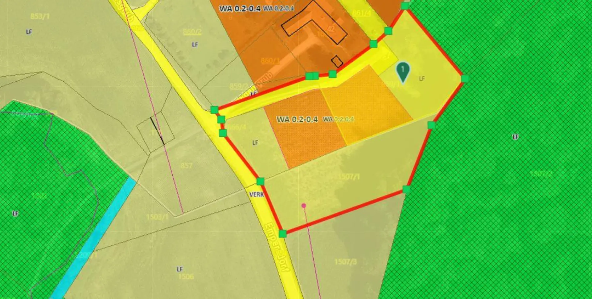 WA 0,2 – 0,4 (Wohnen Allgemein – Bebauungsdichte 20–40 %)