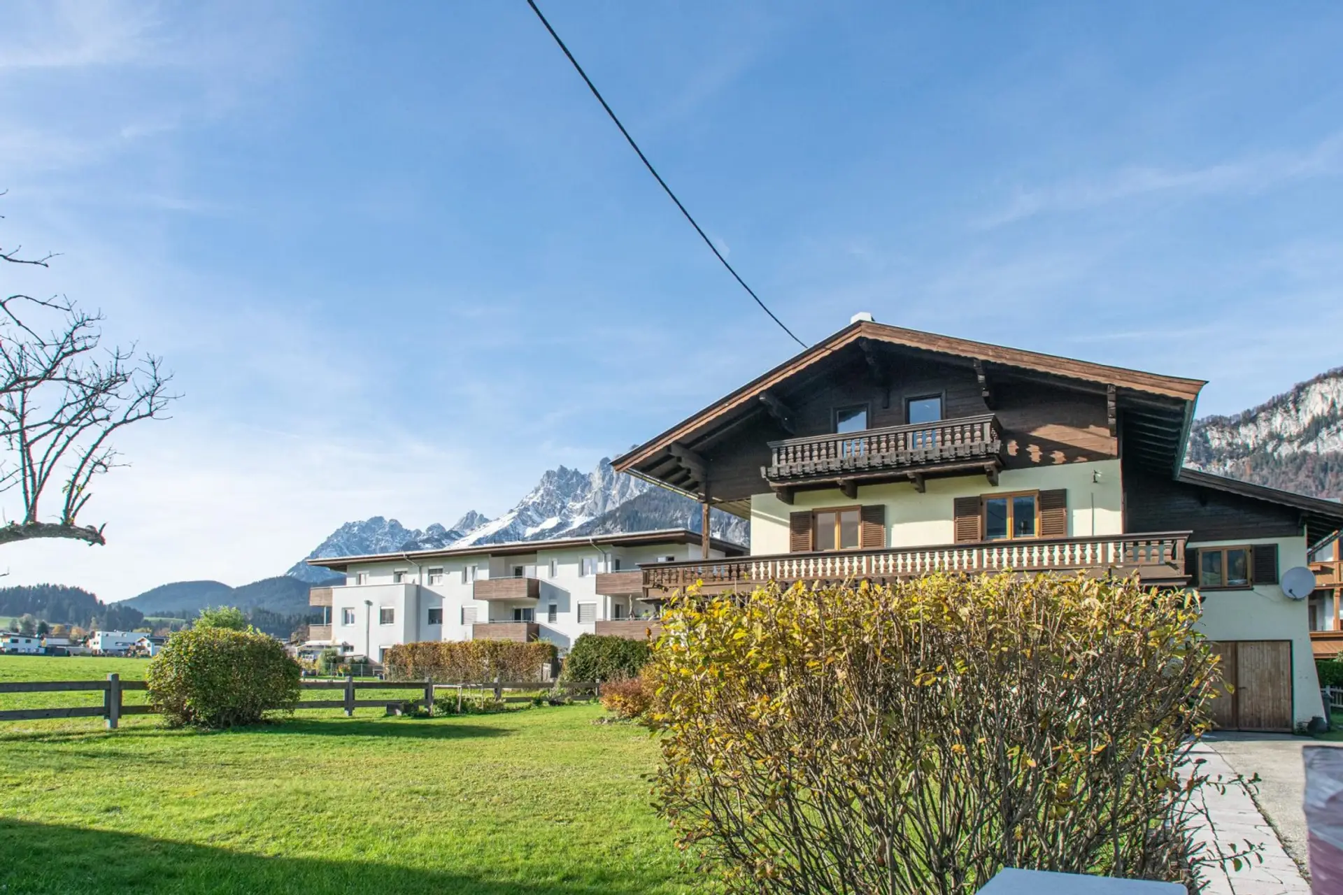 Diese Liegenschaft liegt in absoluter Sonnenlage und verfügt über einen wunderbaren, herrlichen Rundumblick zum Kitzbüheler Horn, Kitzbüheler Alpen, Loferer Steinberge und Wilden Kaiser.