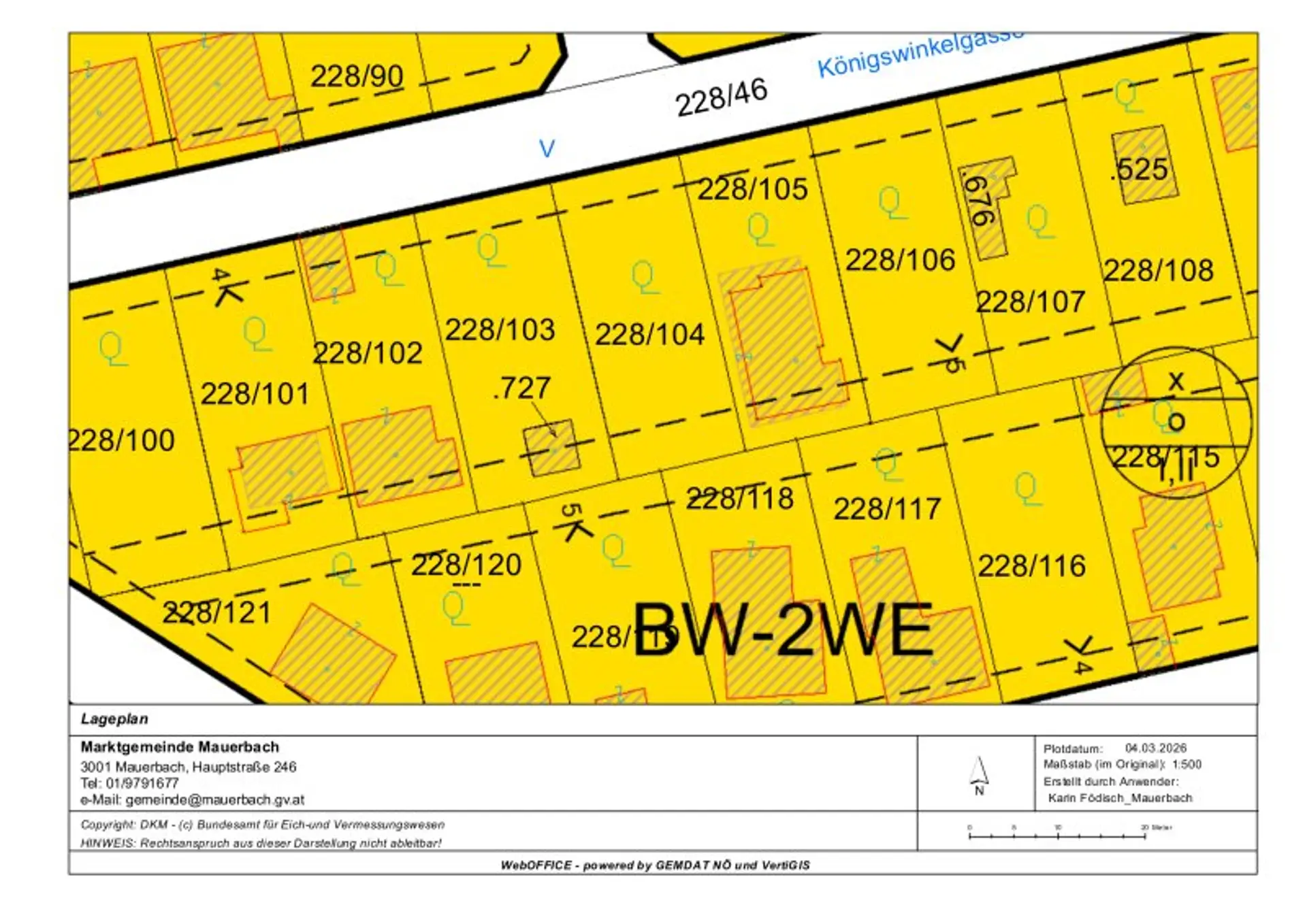 Gemäß den geltenden Bebauungsbestimmungen der Mauerbach gelten folgende Eckdaten: