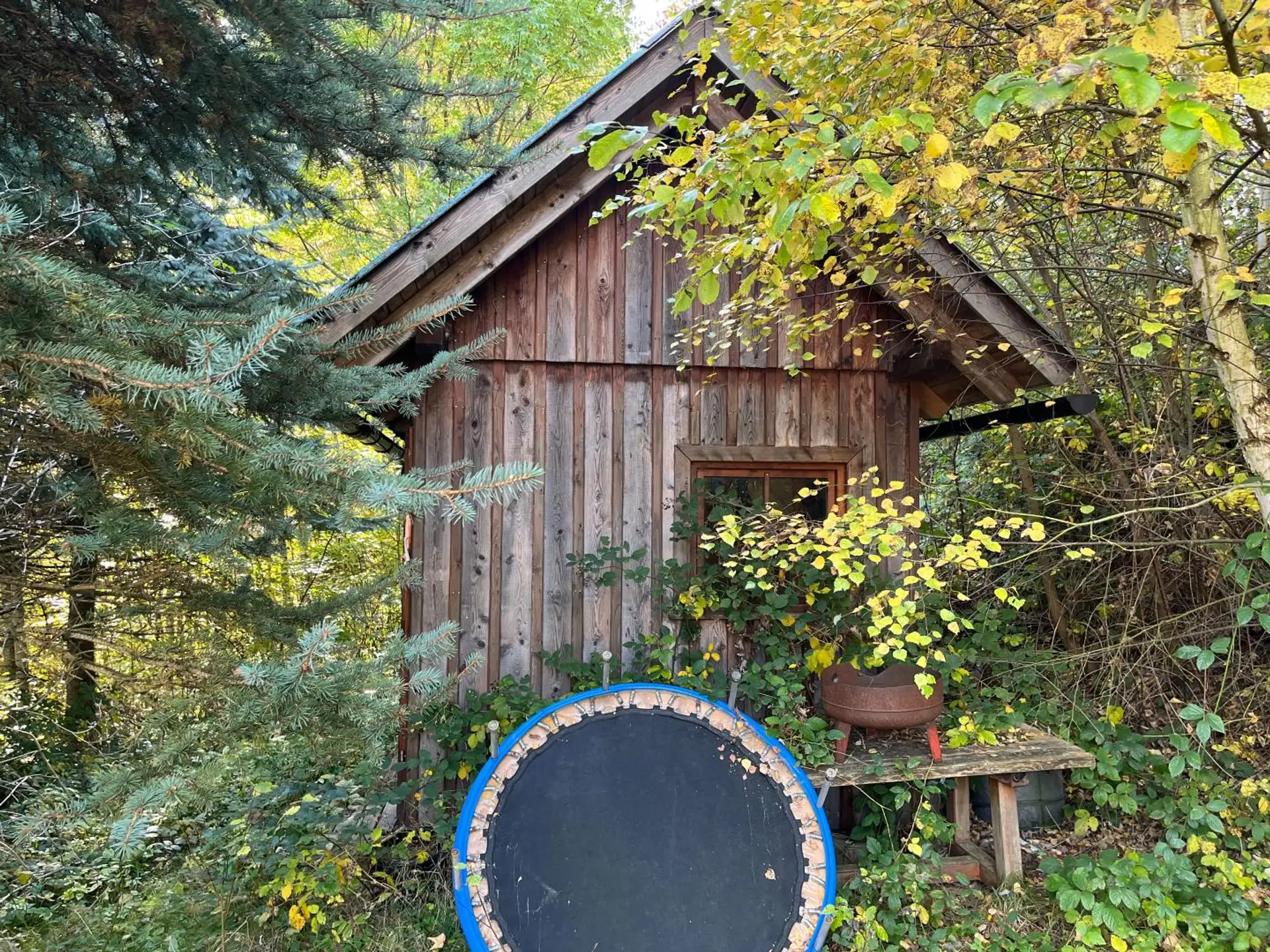 Es erwartet Sie bereits eine kleine Gartenhütte im Jungwald.