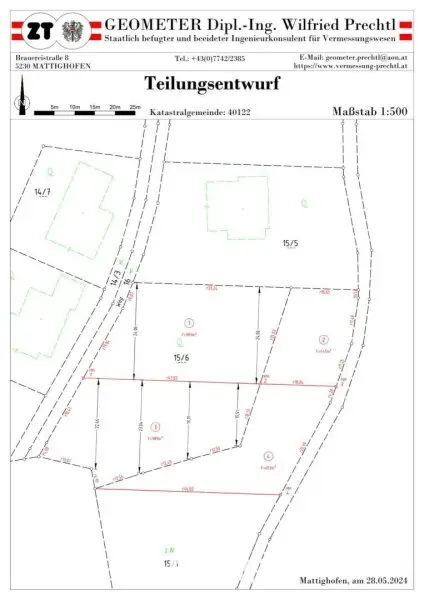 Dieses große Baugrundstück mit gesamt 1978m² kann in 2 Teilgrundstücke zu je 989m² gemäß Teilungsplan-Entwurf geteilt werden.
