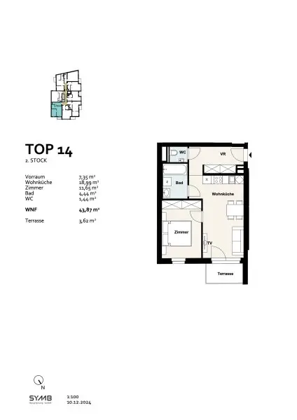 Das Wohngebäude umfasst 31 modern gestaltete Wohneinheiten mit Größen zwischen 31 m² und 72 m², die überwiegend mit großzügigen Außenflächen wie Balkonen oder Terrassen ausgestattet sind. Die hochwertigen Materialien, darunter Eichenparkettböden und dreifach-isolierverglaste Kunststofffenster mit elektrisch bedienbarem Sonnenschutz, garantieren ein angenehmes Wohnklima. Ergänzt wird dies durch zeitgemäße Sicherheitsstandards wie Rauchmelder in allen Aufenthaltsräumen (außer in Küchen) und Brandschutzwohnungseingangstüren.