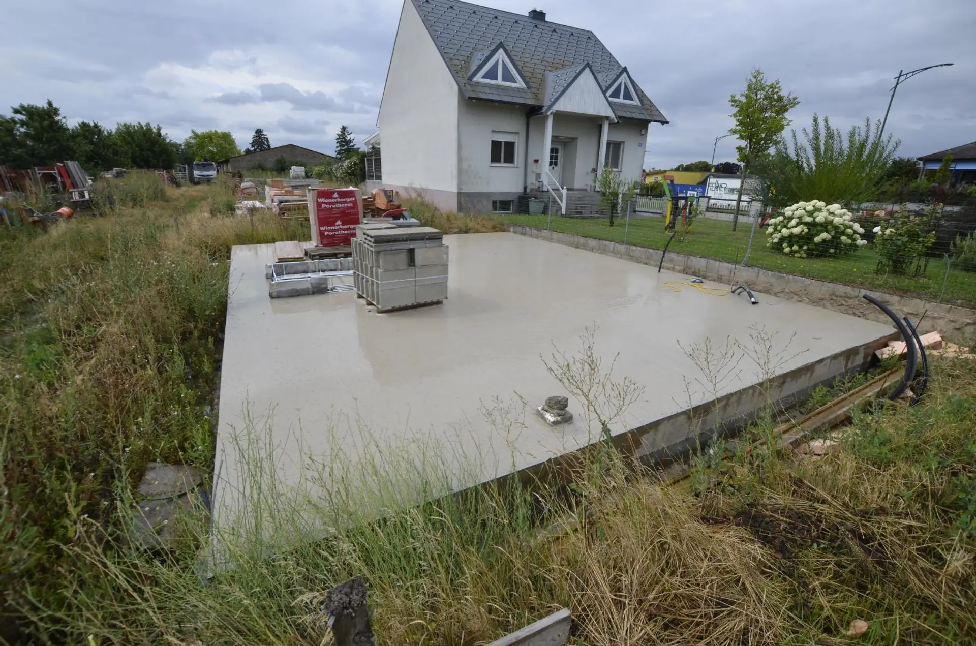 4 Bodenplatten fertiggestellt mit Verrohrung gem. Einreichplan.
