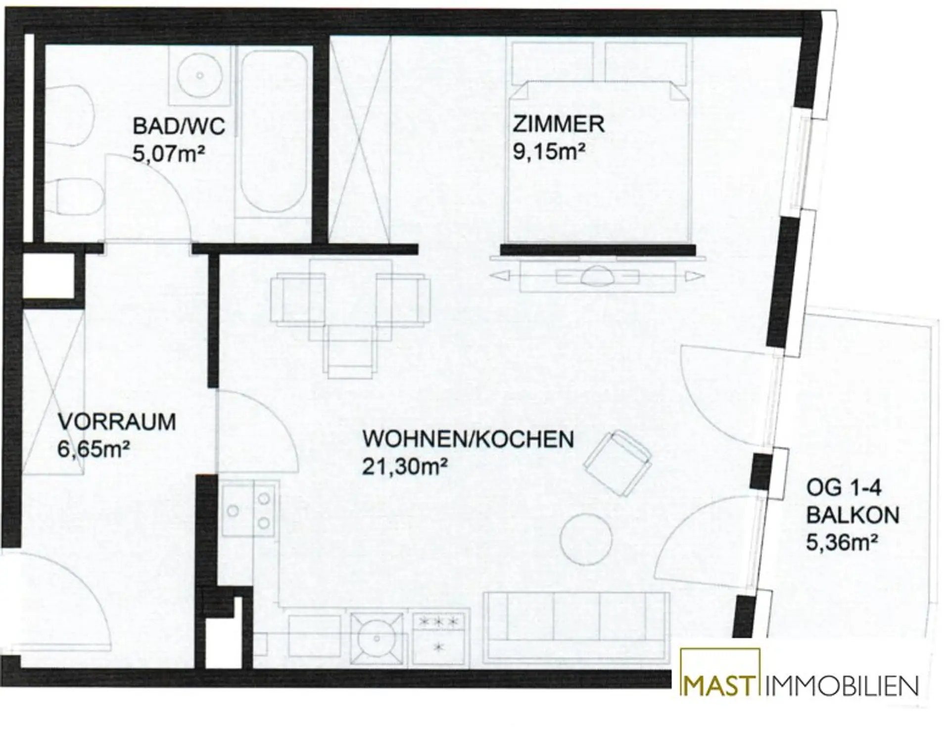 Nach Eintritt in die Wohnung gelangen Sie in großzügiges Vorzimmer mit ausreichend Platz für Ihre Garderobe. Das Badezimmer dass mit einer Wanne ausgestattet ist, verfügt über einen WM-Anschluss und Handwaschbecken. Da man bei der Planung viel Wert auf effektives Raumgefühl gelegt hat, wurde das WC beabsichtigt in das Badezimmer verbaut, somit gewinnt man mehr Wohn- & Schlafraum.