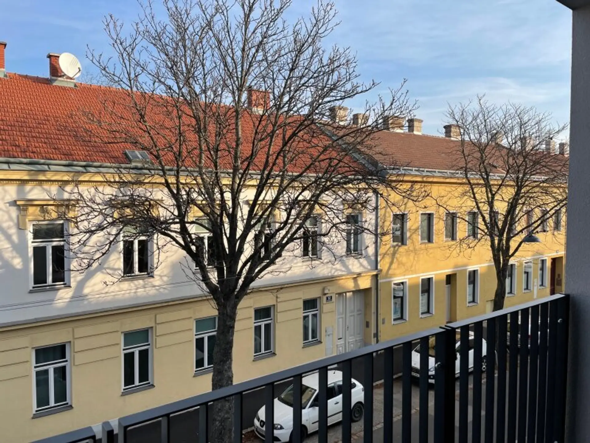 Zwei hofseitige Baukörper mit 3 Geschoßen (Zugang über Kinskygasse 3).