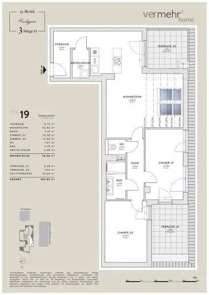 Highlight hier ist jedenfalls die 98m² große Dachterrasse.