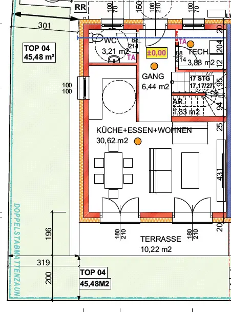 Ausstattung: Boden Gäste-WC Fußbodenheizung Terrasse