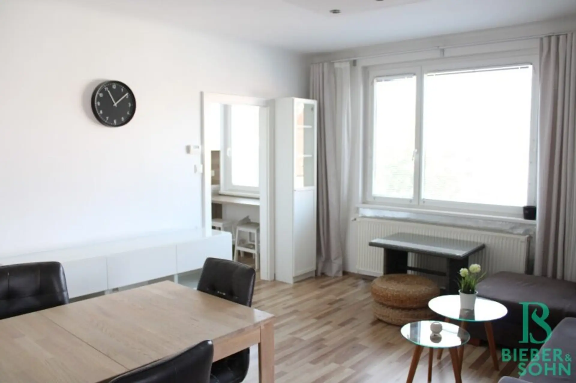 Moderne Laminatböden, klassische Verfliesung, 2-Fach-Isolierglas-Fenster mit Innenjalousien, große DAN-Küche mit Markengeräten, hochwertige Möblierung wie Bett, Sofa, Kleiderschrank, Garderobenschrank, Esstisch,... Bosch Waschmaschine, moderner Waschtisch mit Unterkasten und Allibert, Badewanne, moderne Deckenspots, Gegensprechanlage und vieles Weitere sind die Ausstattungsmerkmale dieser Wohnung.