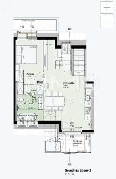 Die 92 hochwertigen Eigentumswohnungen, verteilt auf zwei Stiegen, bieten durchdachte Grundrisse, helle Räume und vielfältige Wohnungsgrößen – vom kompakten Studio bis zur großzügigen Vierzimmer-Familienwohnung. Freiflächen wie Loggien, Balkone, Terrassen oder Eigengärten erweitern den Wohnraum ins Freie und bieten private Rückzugsorte mit hoher Lebensqualität. Zusätzlich schafft ein vielseitig nutzbarer Gemeinschaftsraum mit Garten, Urban-Gardening-Beeten und Aufenthaltsbereichen sowie vollausgestatteter Küche Raum für Begegnung und Nachbarschaft.
