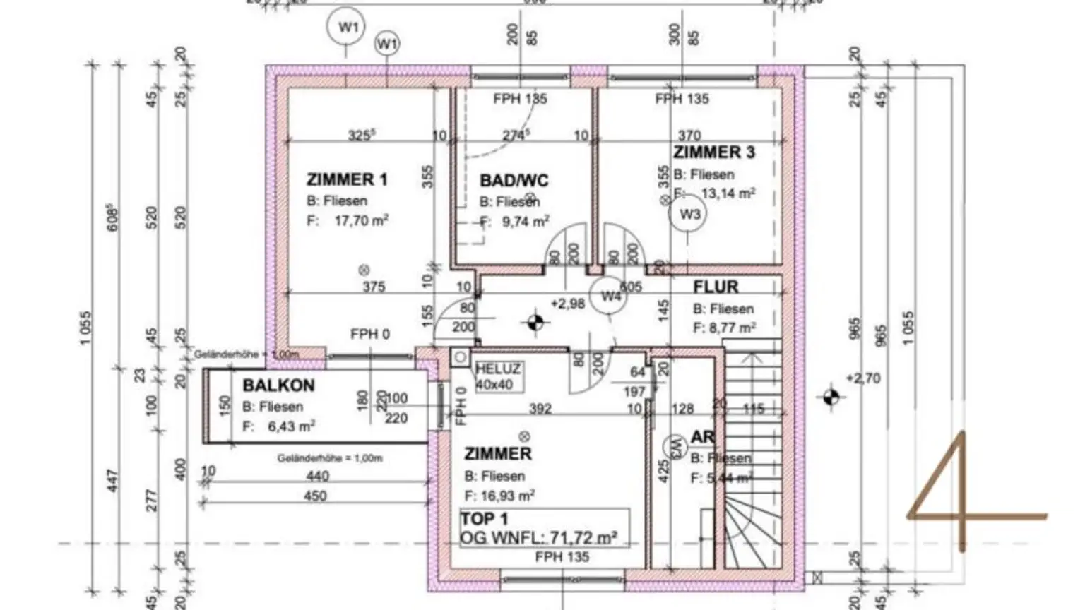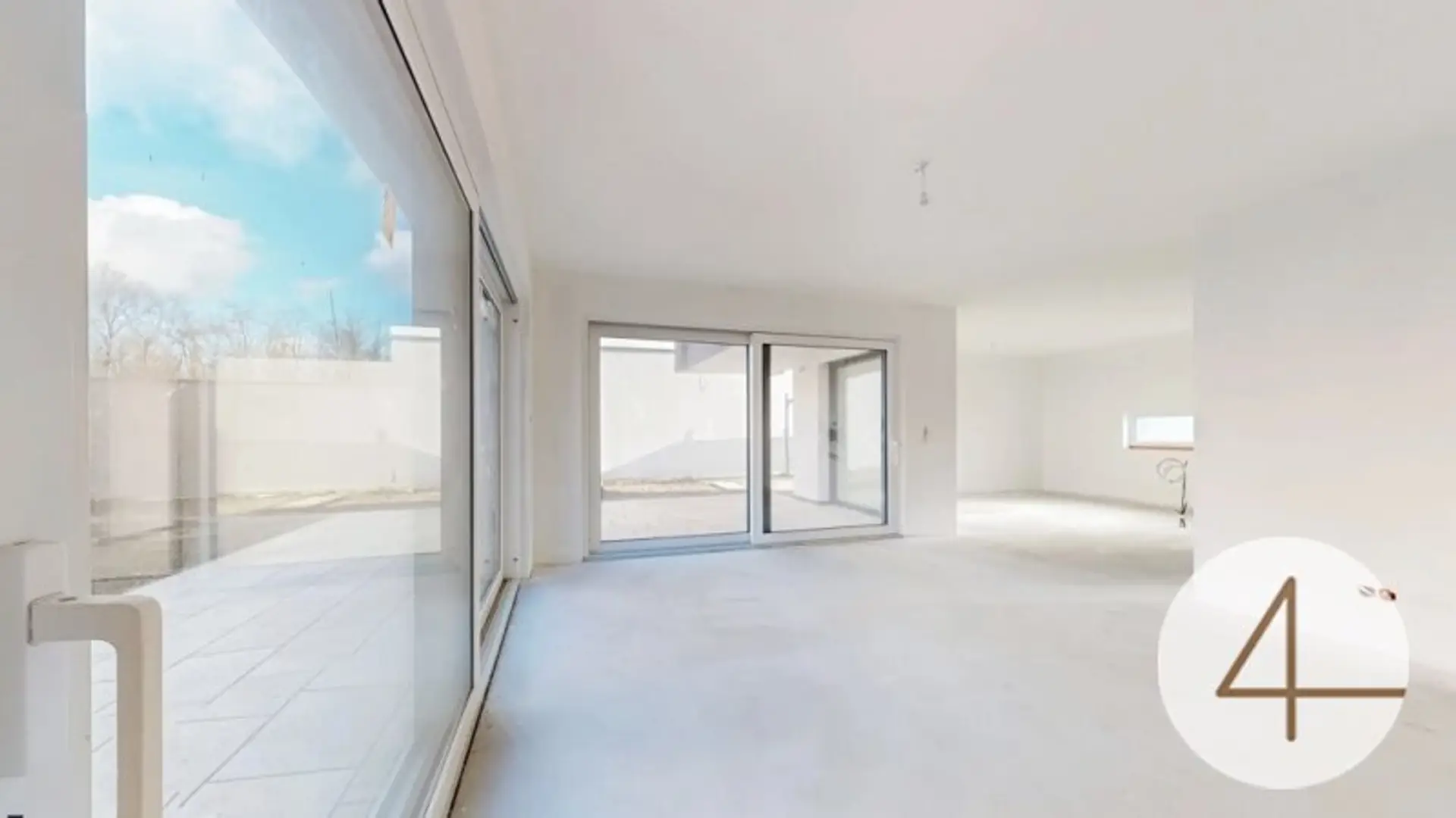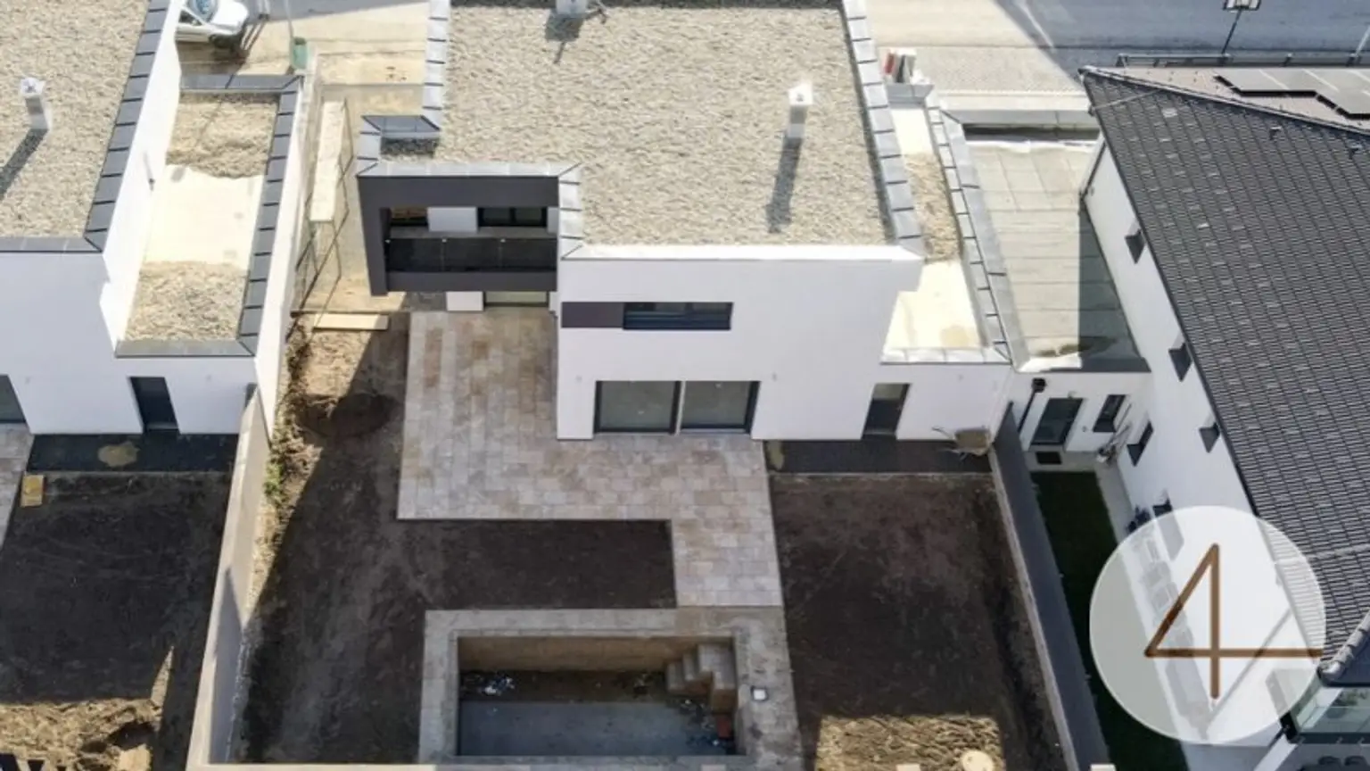 Auf einem ca. 448 m² großen Grundstück bietet das 2025 errichtete Haus großzügige Raumverhältnisse mit insgesamt vier Zimmern, zwei Bädern, zwei separaten WCs sowie einem praktischen Technikraum.