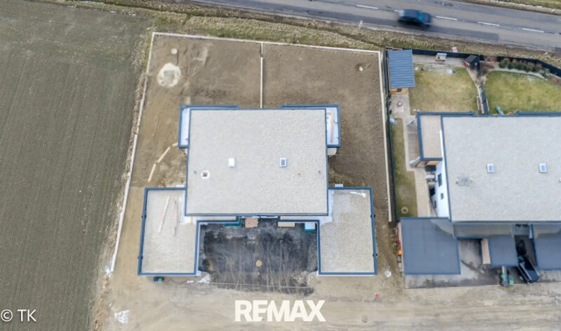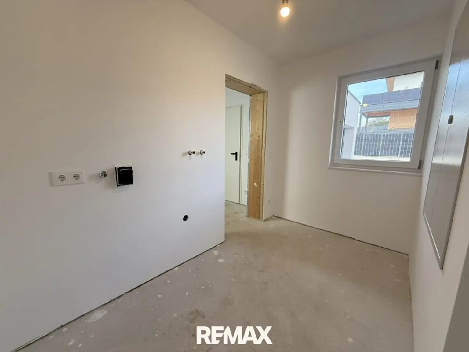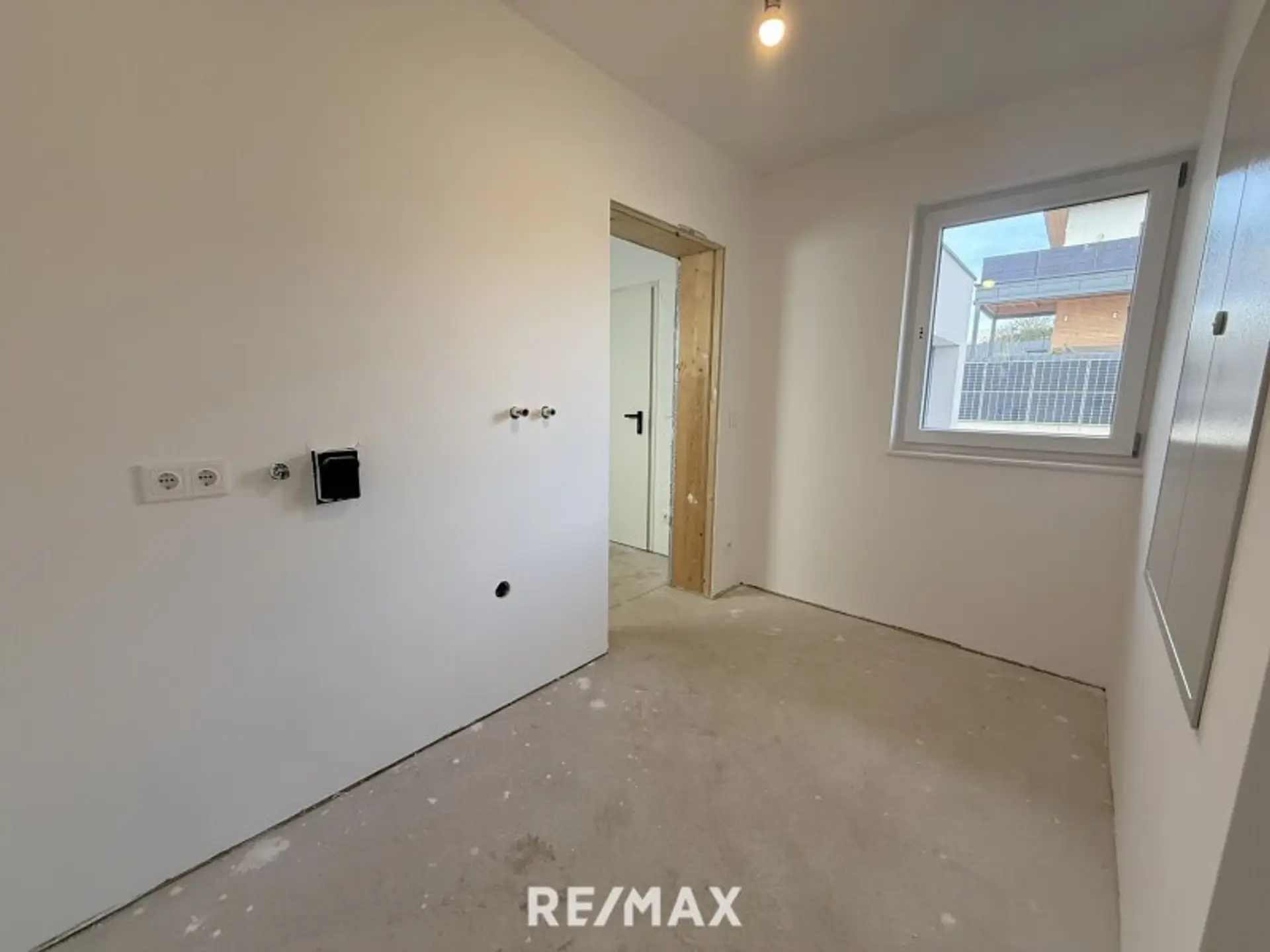 Im Erdgeschoss befinden sich eine Doppelgarage, ein Technikraum mit Zugang nach außen, ein Vorraum, ein WC, ein Abstellraum sowie ein großzügiger Wohn- und Essbereich.