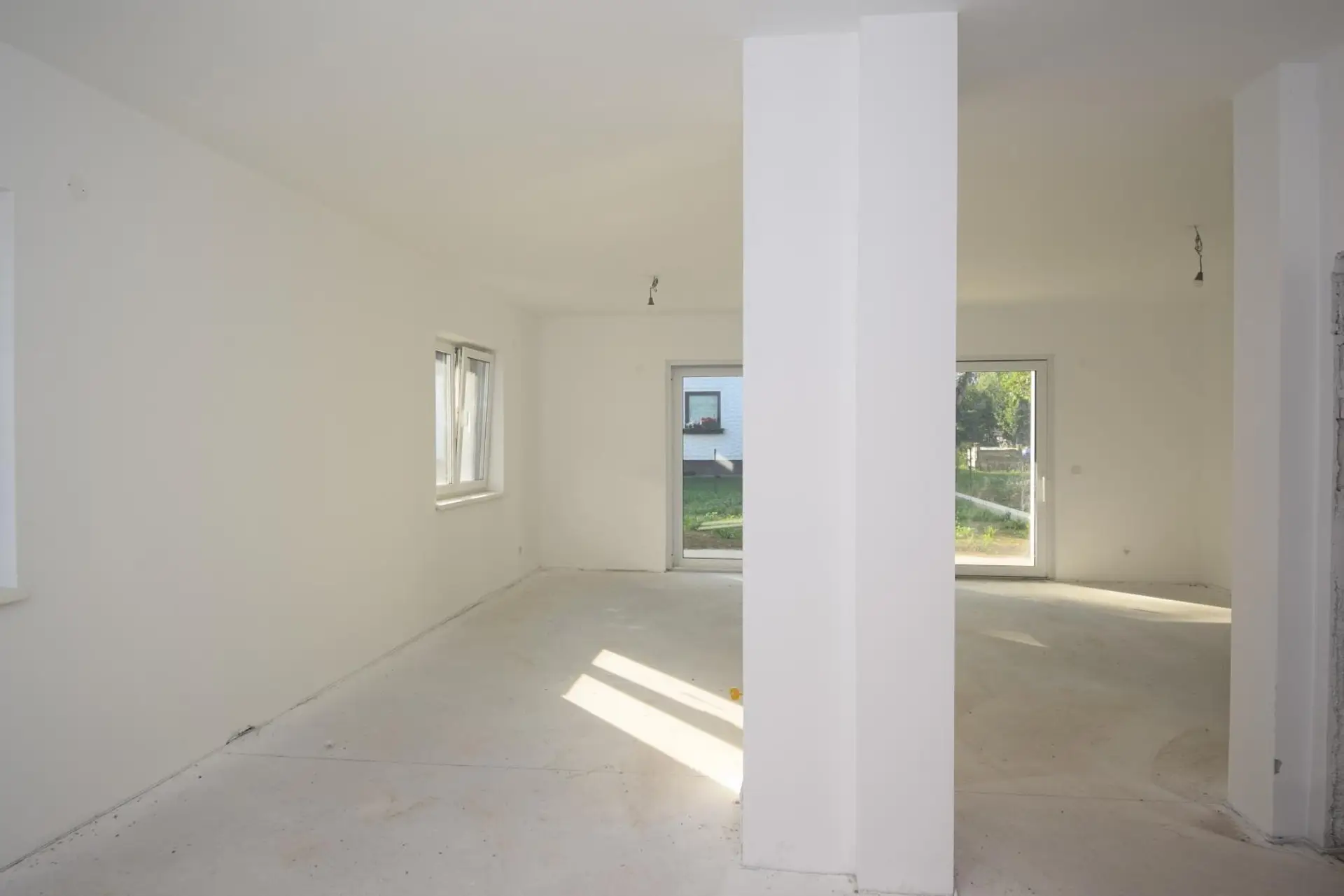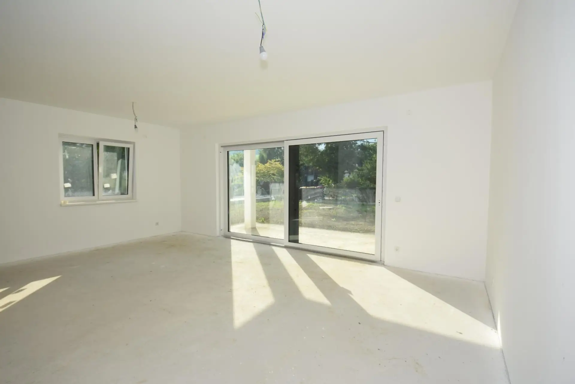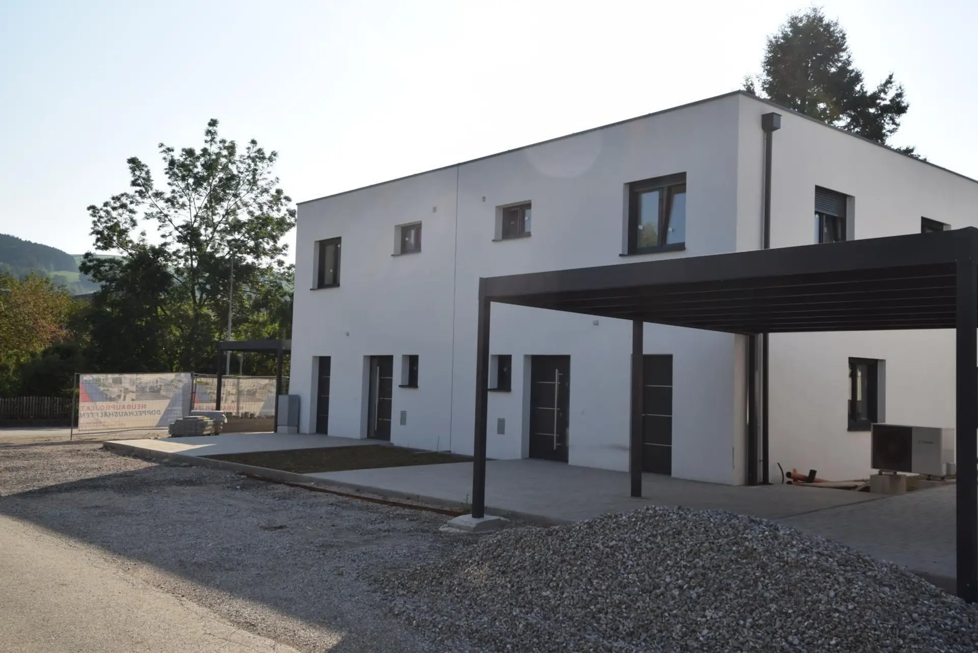 * Erdgeschoß: Vorraum, offener Küchen-Ess-Wohnbereich mit Terrasse, Bad mit Dusche & WC, 2 Abstellräume