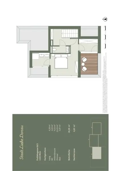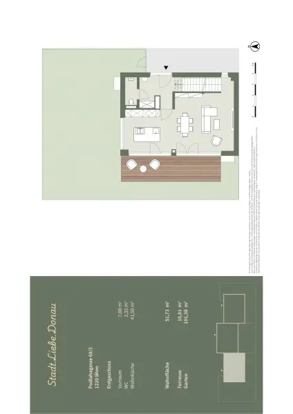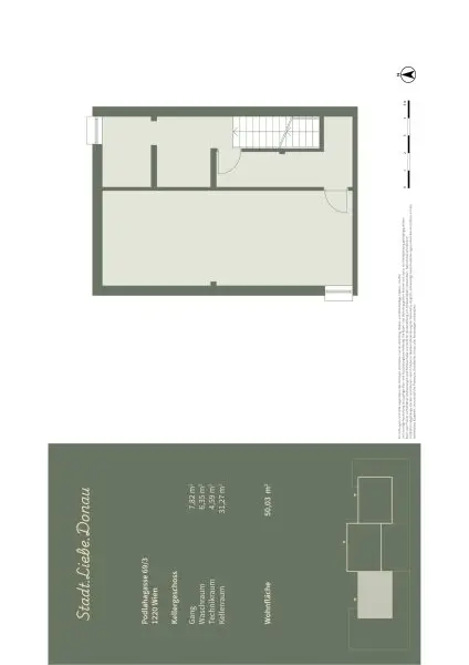 Das Gebäude befindet sich in absoluter Grünruhelage in einer ruhigen Seitengasse in 1220 Wien. Die ruhige Wohngegend ist geprägt durch Einfamilienhäuser sowie kleinere moderne Wohnprojekte. Die Stadtgrenze bei Groß-Enzersdorf sowie die Naherholungsgebiete Lobau und der Donau-Oder-Kanal sind per Fahrrad oder auch fußläufig zu erreichen.