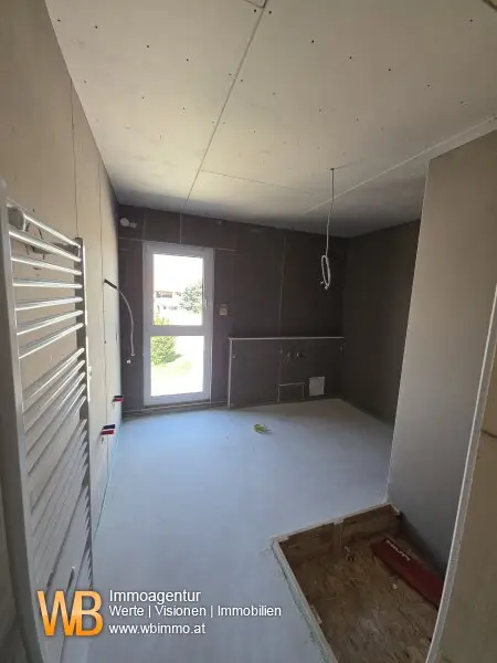 * großes Badezimmer mit Dusche, Badewanne und WC (vorbereitet).