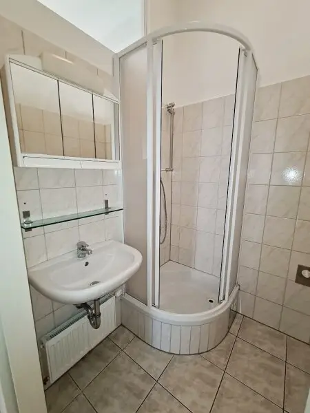 + BAD MIT DUSCHE, WASCHTISCH UND WASCHMASCHINENANSCHLUSS