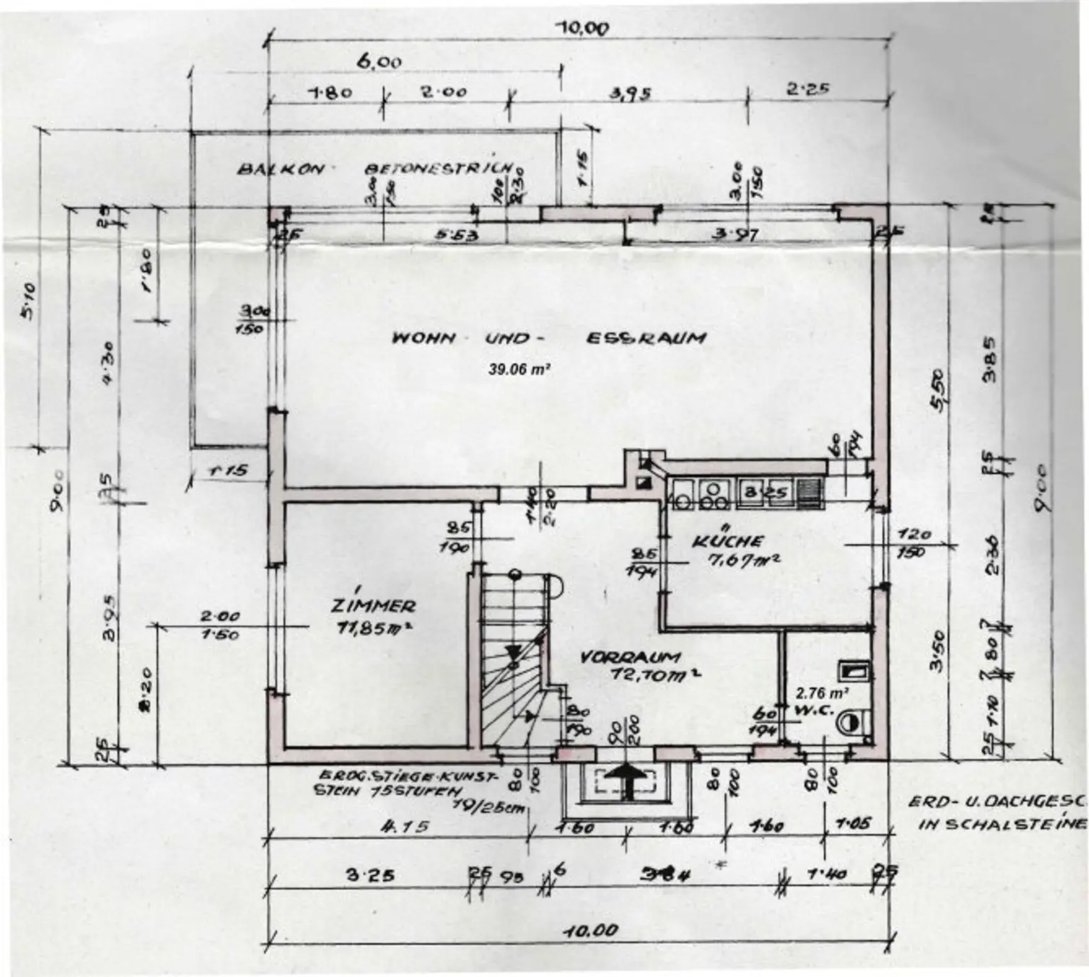 * Wohnzimmer mit Balkon ( 39,06 m²)