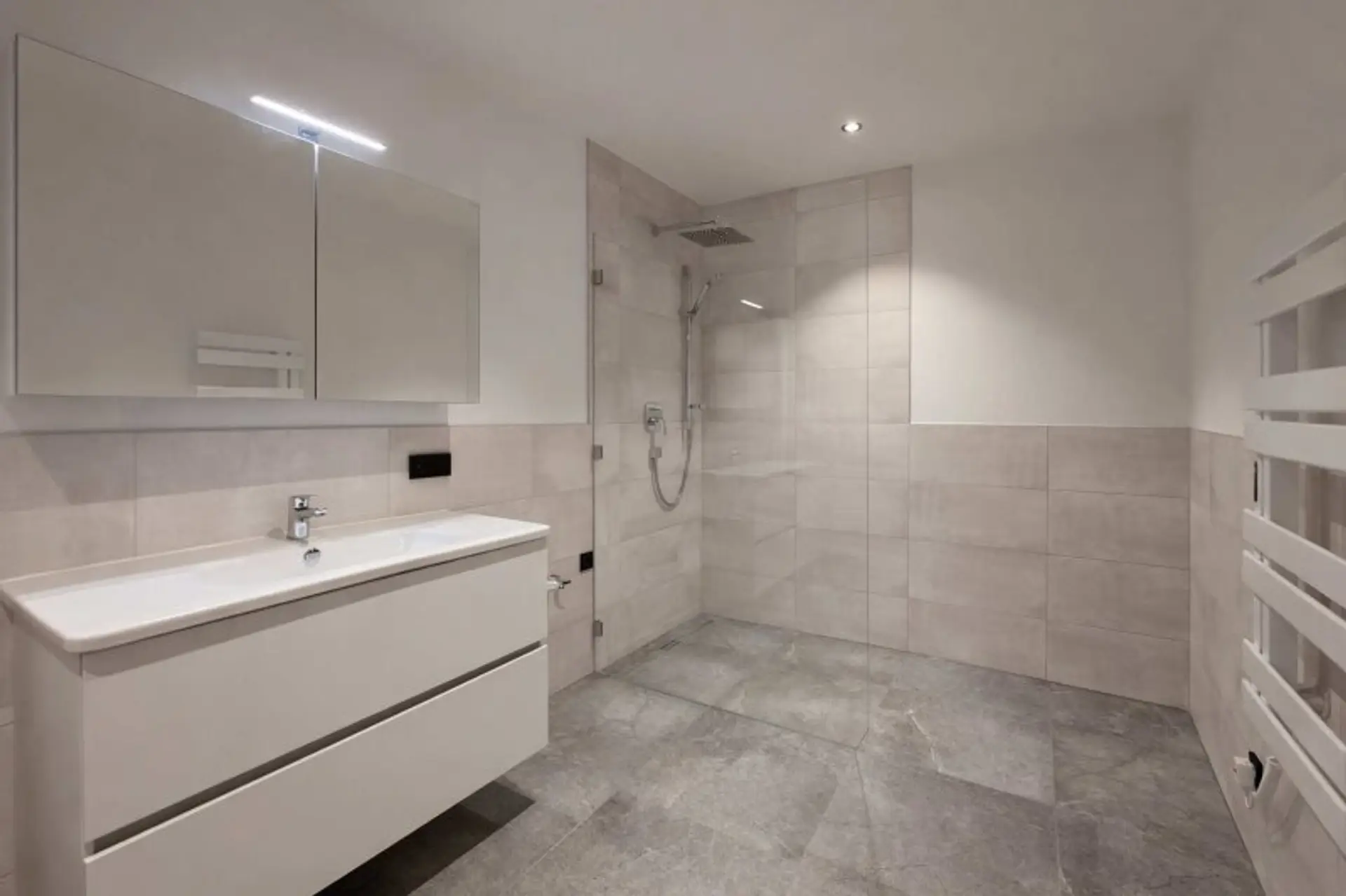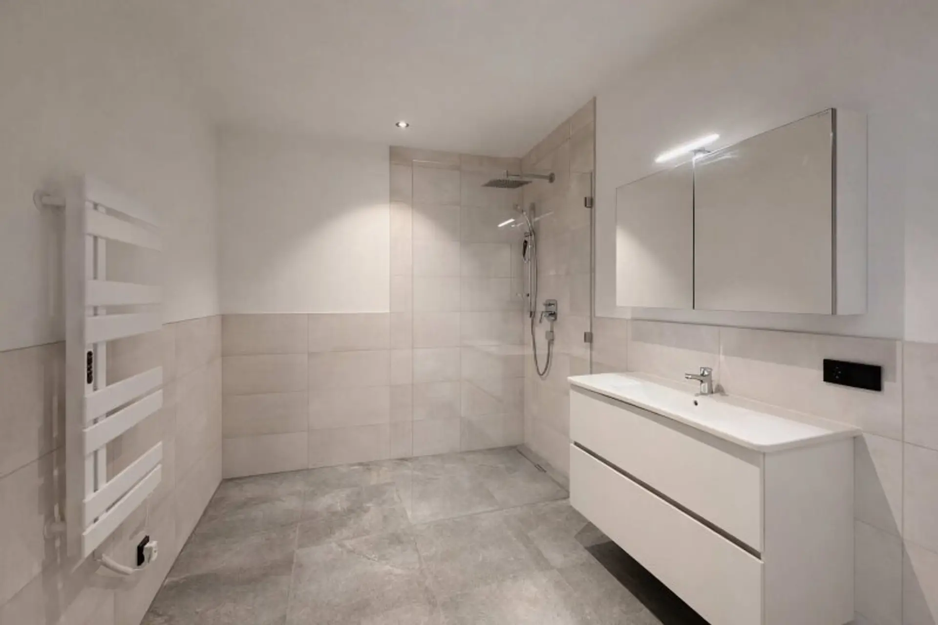 Zur Ausstattung gehören ebenfalls moderne Bäder mit eben begehbarer Regenwalddusche.