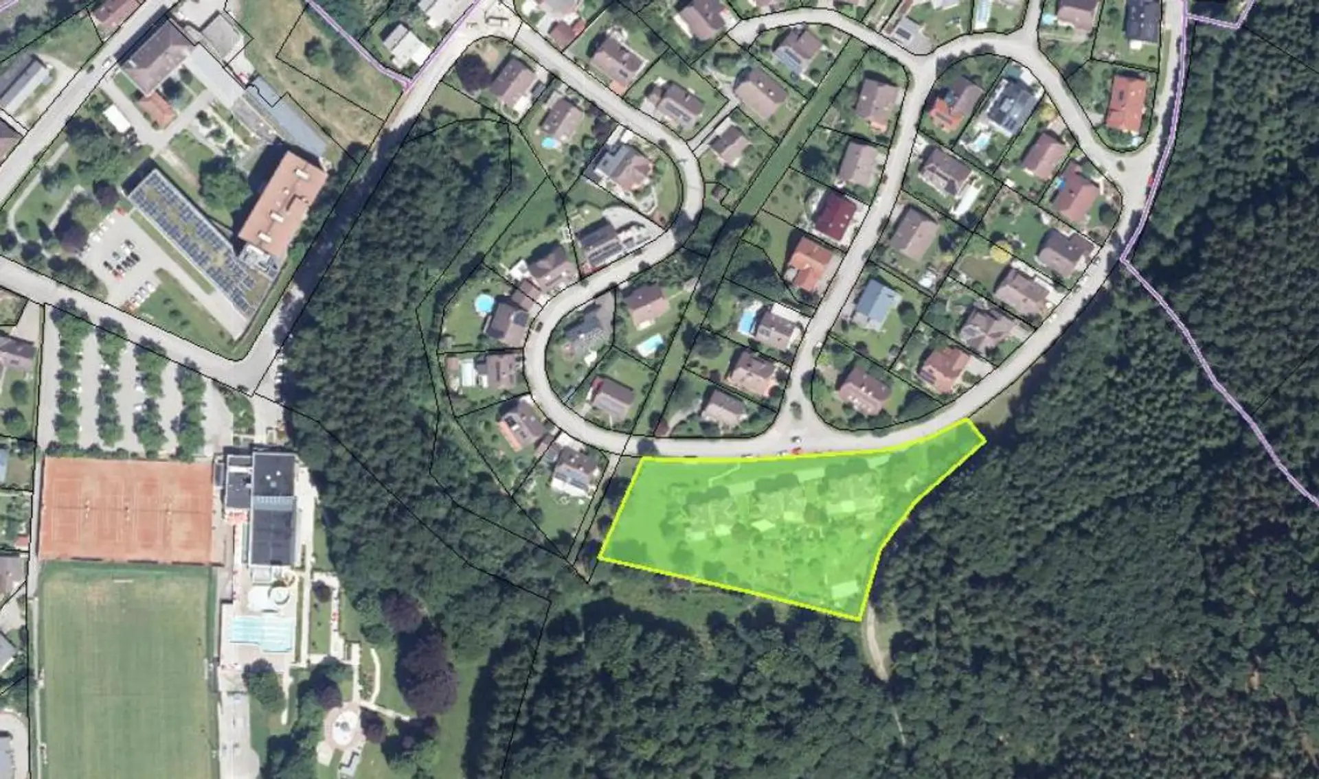 * Widmung: ca. 546 m² Bauland/Wohngebiet & ca. 100 m² Grüngürtel
