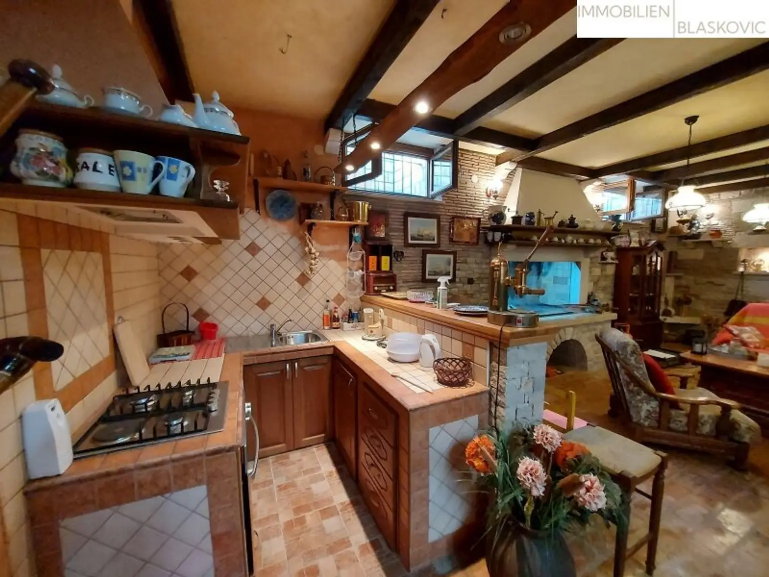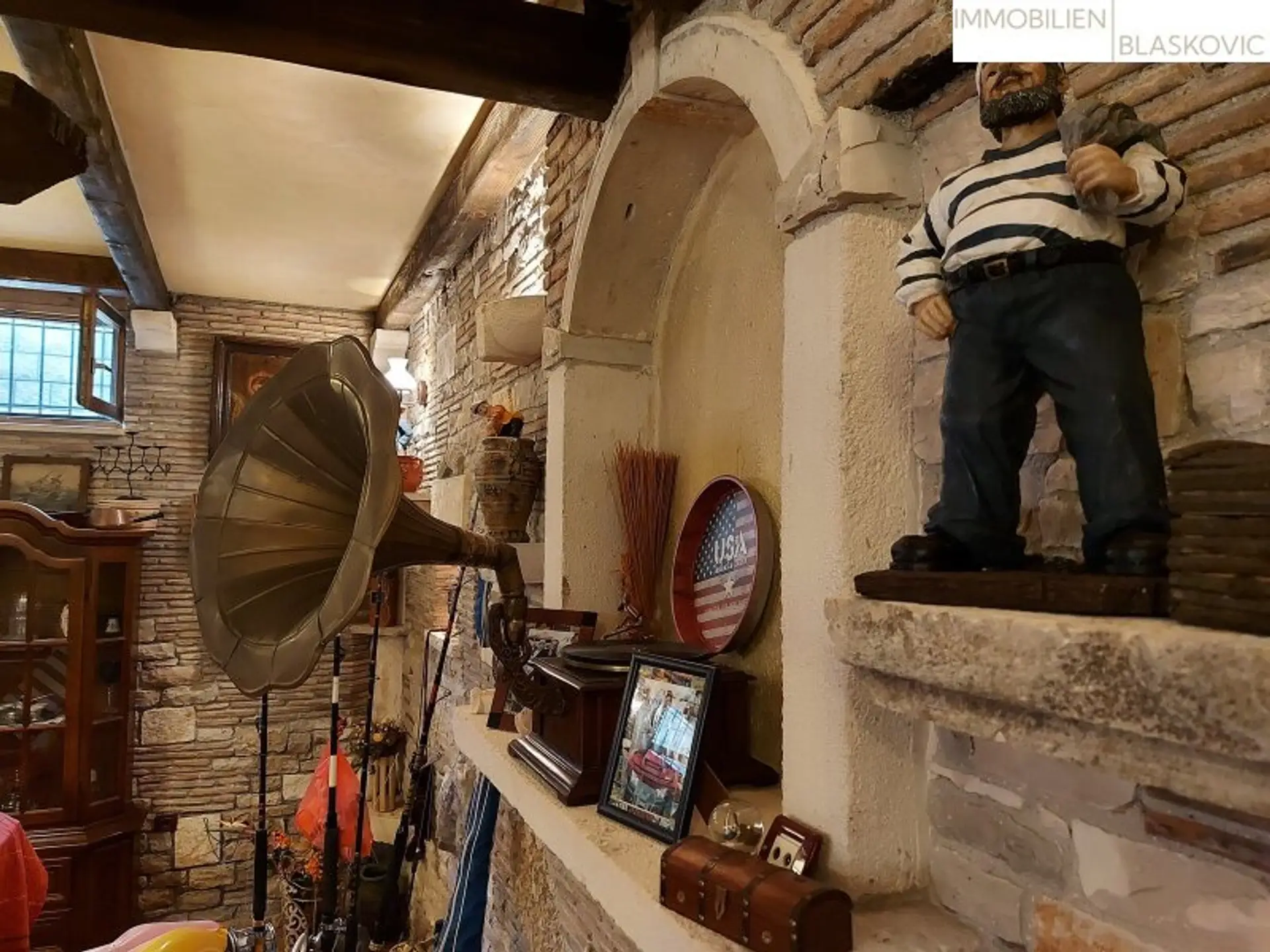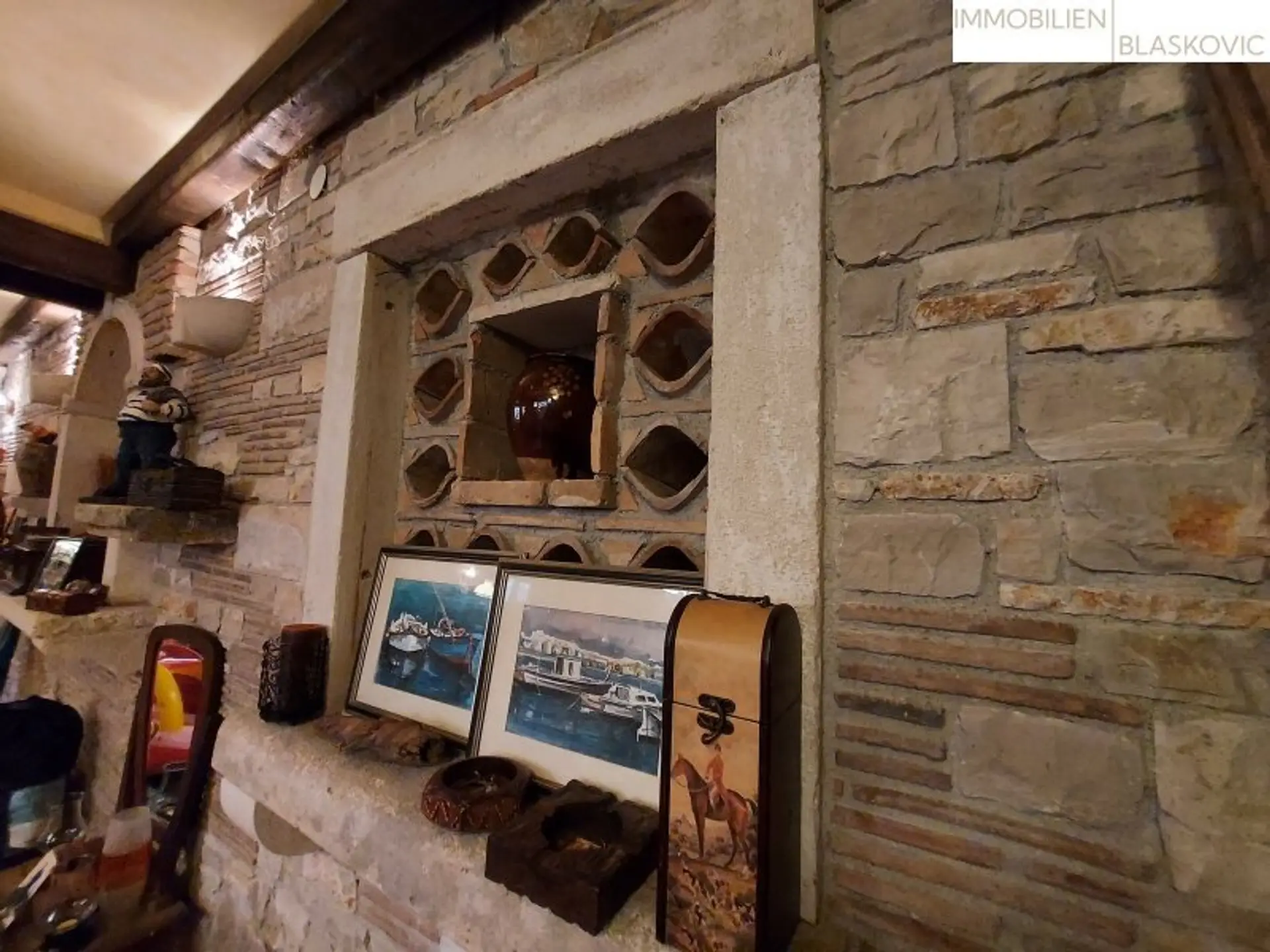 Im Untergeschoss befindet sich eine typisch istrische Taverne mit Küche, einem offenen Kamin, einem gemütlichen Lounge-Bereich und einem großen Esstisch, welcher Platz für zehn Personen bietet. Die Taverne ist mit viel Liebe zum Detail und mit einigen restaurierten Antiquitäten eingerichtet. Hier wurden traditionelle Materialien sowie Stein und Holz verwendet. In diesem behaglichen, rustikalen Ambiente steht gemütlichen Stunden mit der Familie und Freunden nichts mehr im Wege. Neben der Taverne gibt es ein weiteres Badezimmer und einen Holzschuppen.