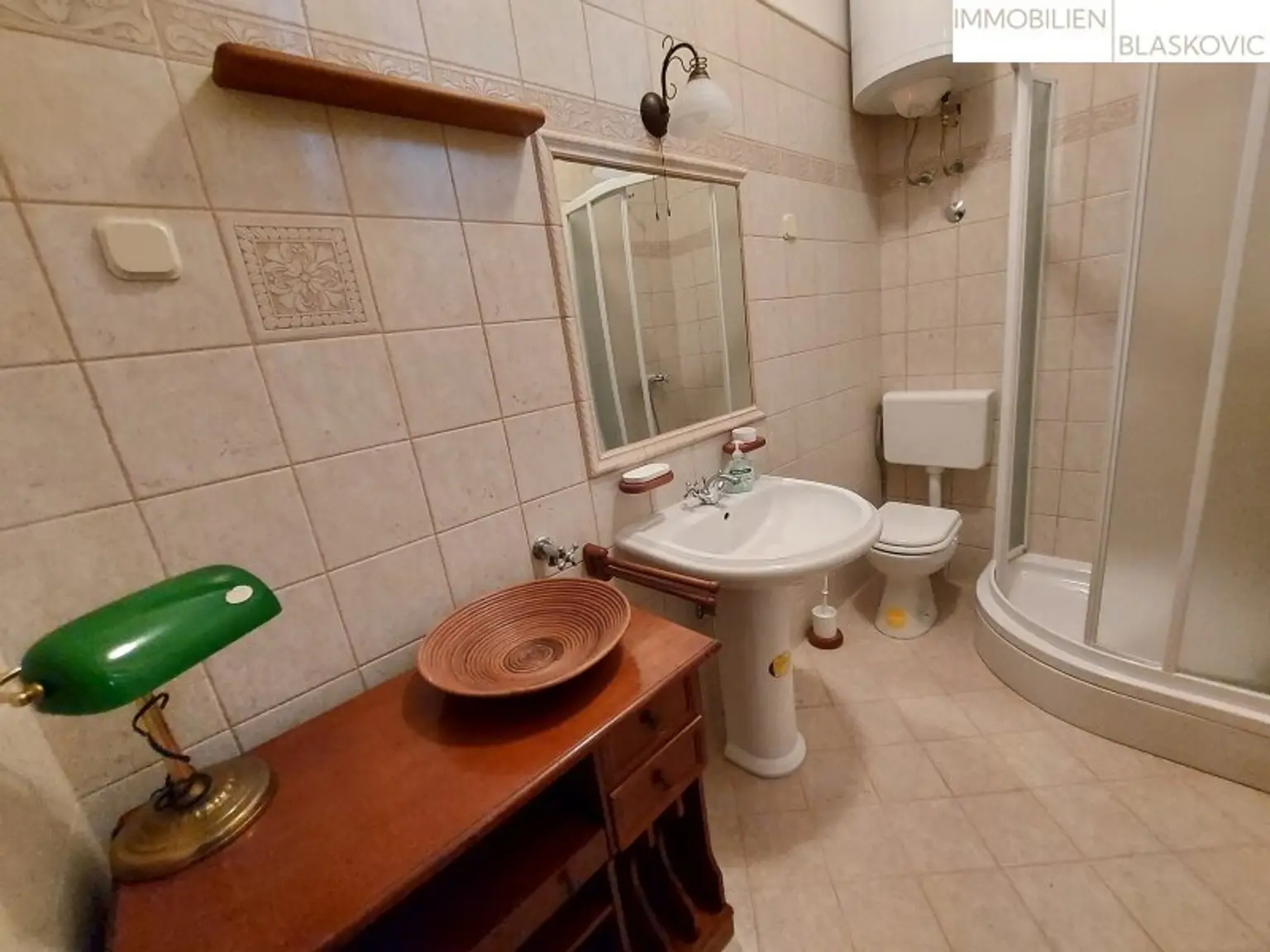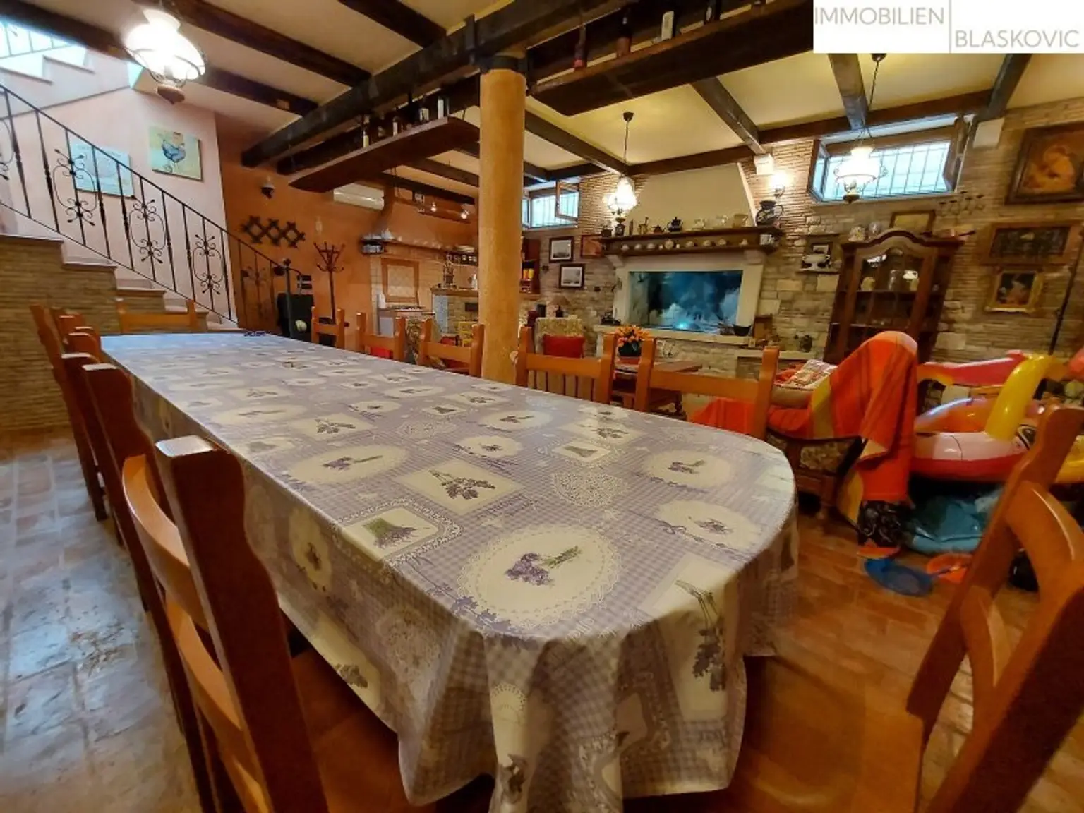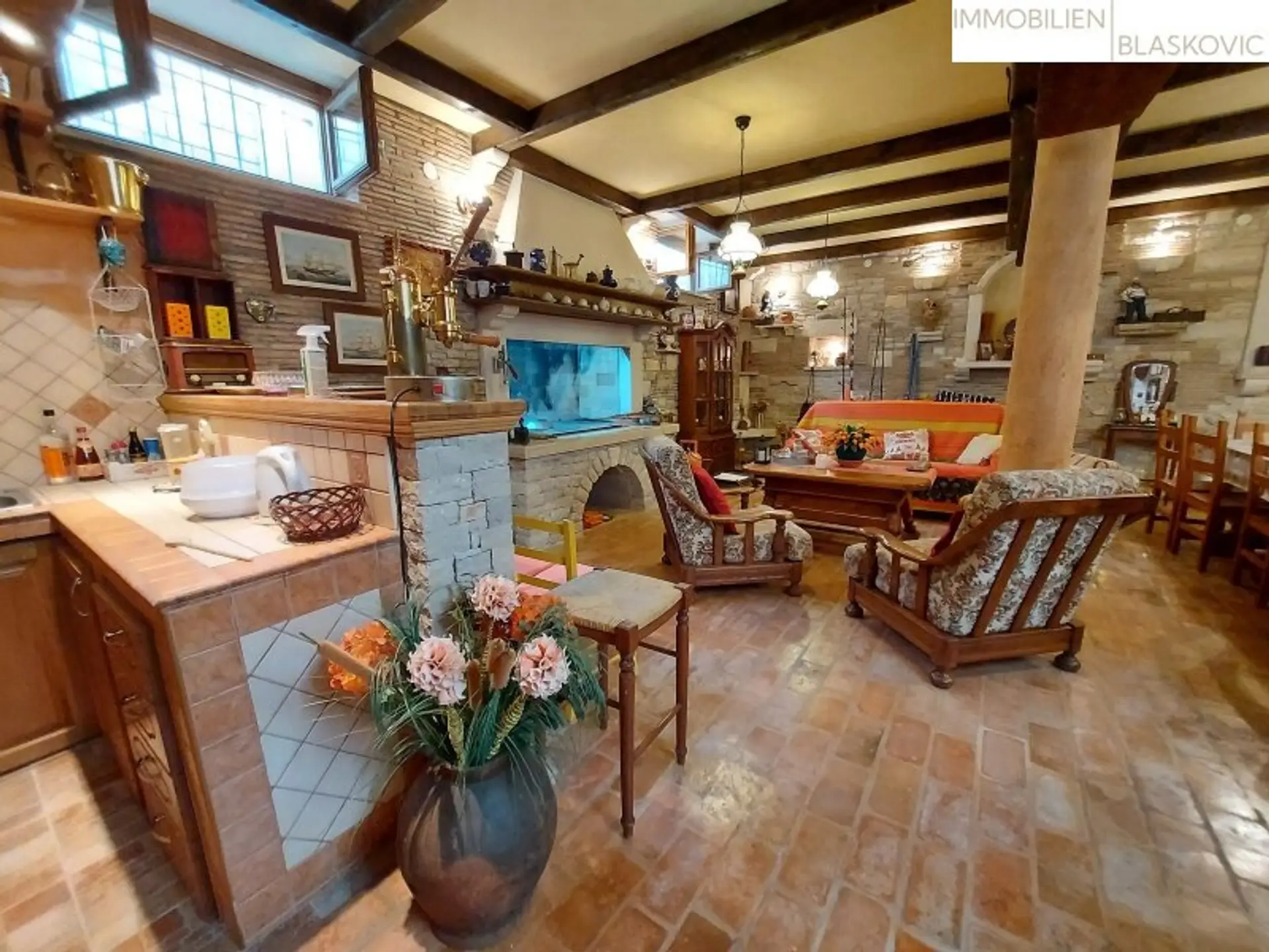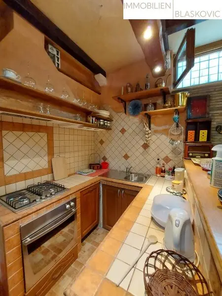Im Untergeschoss befindet sich eine typisch istrische Taverne mit Küche, einem offenen Kamin, einem gemütlichen Lounge-Bereich und einem großen Esstisch, welcher Platz für zehn Personen bietet. Die Taverne ist mit viel Liebe zum Detail und mit einigen restaurierten Antiquitäten eingerichtet. Hier wurden traditionelle Materialien sowie Stein und Holz verwendet. In diesem behaglichen, rustikalen Ambiente steht gemütlichen Stunden mit der Familie und Freunden nichts mehr im Wege. Neben der Taverne gibt es ein weiteres Badezimmer und einen Holzschuppen.