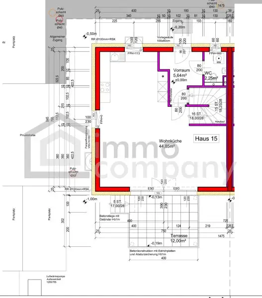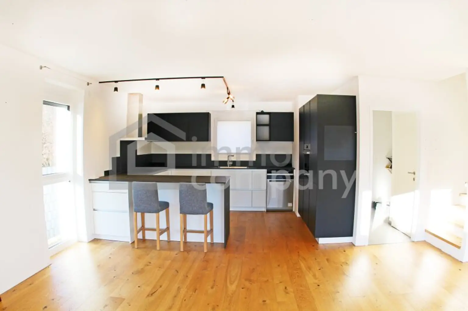 Vorraum, WC, großzügige Wohnküche mit offenem Wohnbereich, direkter Ausgang auf die Terrasse mit Eigengarten.