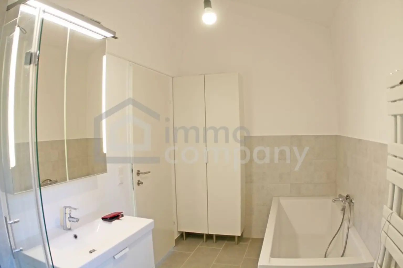 Vorraum, drei zentral begehbare Schlafzimmer sowie ein modernes Badezimmer mit Badewanne, Dusche und WC.