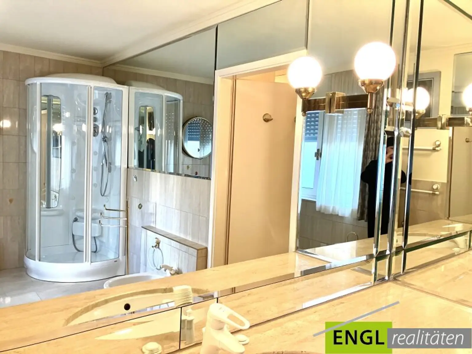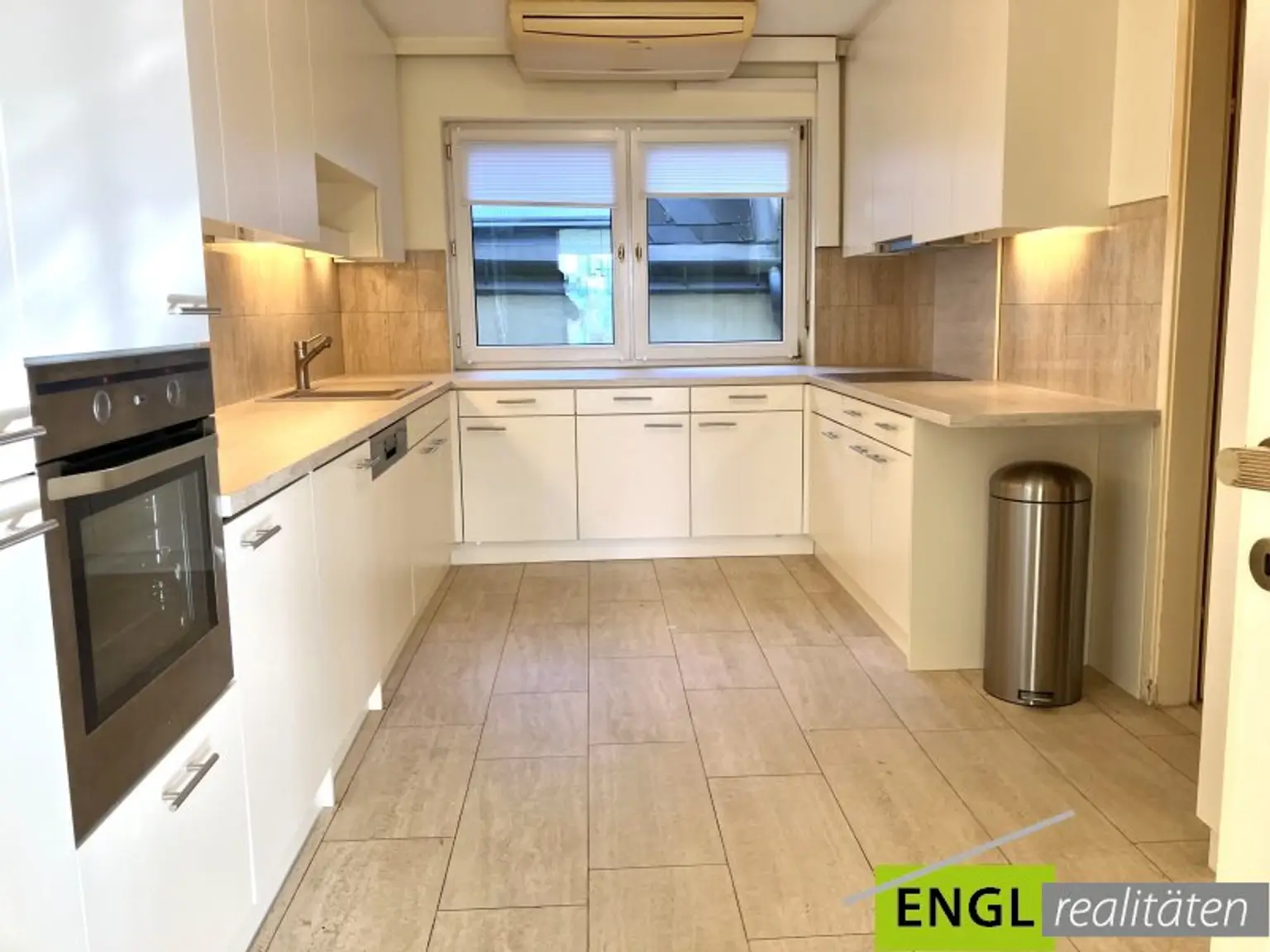 - Großzügige Einbauküche mit Fenster, inkl. aller Geräte (Herd, AEG Backrohr, AEG Kühlschrank und Gefrierfächer, AEG Einbau-Waschmaschine und Einbau-Trockner, AEG Geschirrspüler), Klimagerät