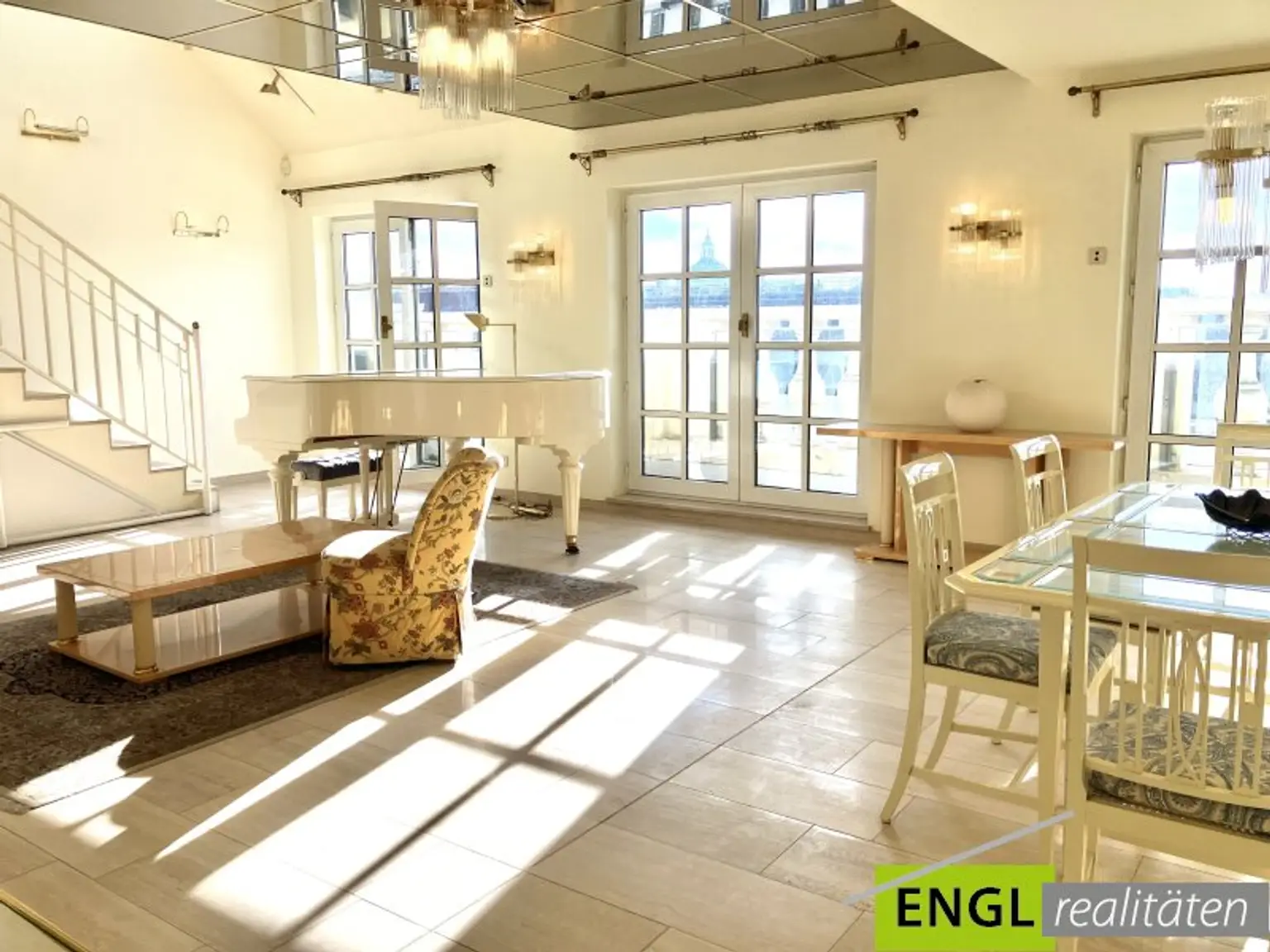 Die wunderschöne und sonnendurchflutete Maisonette Wohnung auf 165 m2 mit Balkon, Wintergarten und einer 51 m2 großen Dachterrasse ist in perfekter Lage am Kärntner Ring mit Blick zum Stephansdom - Nähe Oper, Hotel Bristol, Karlsplatz, Stephansplatz und Kärntner Straße.
