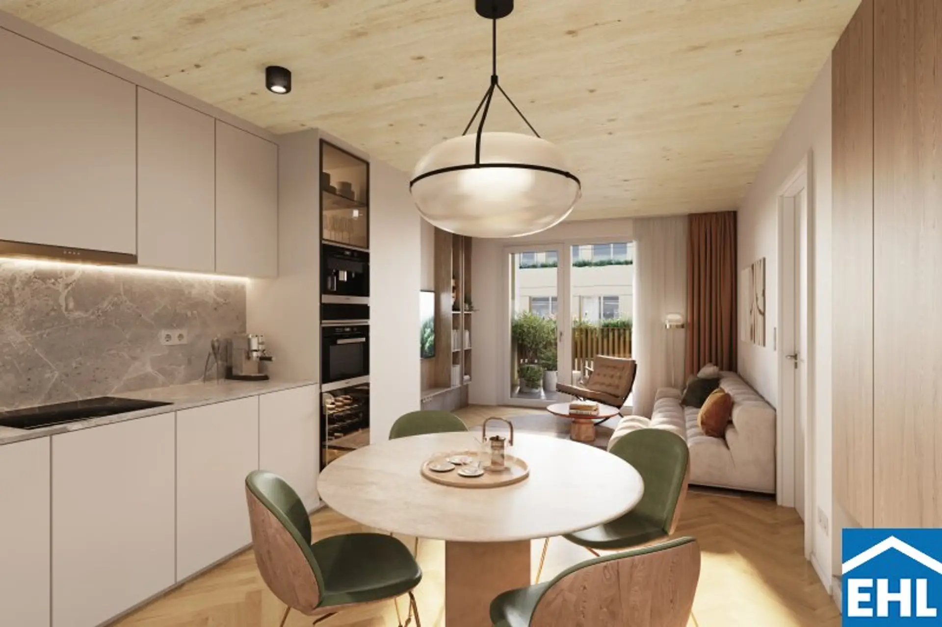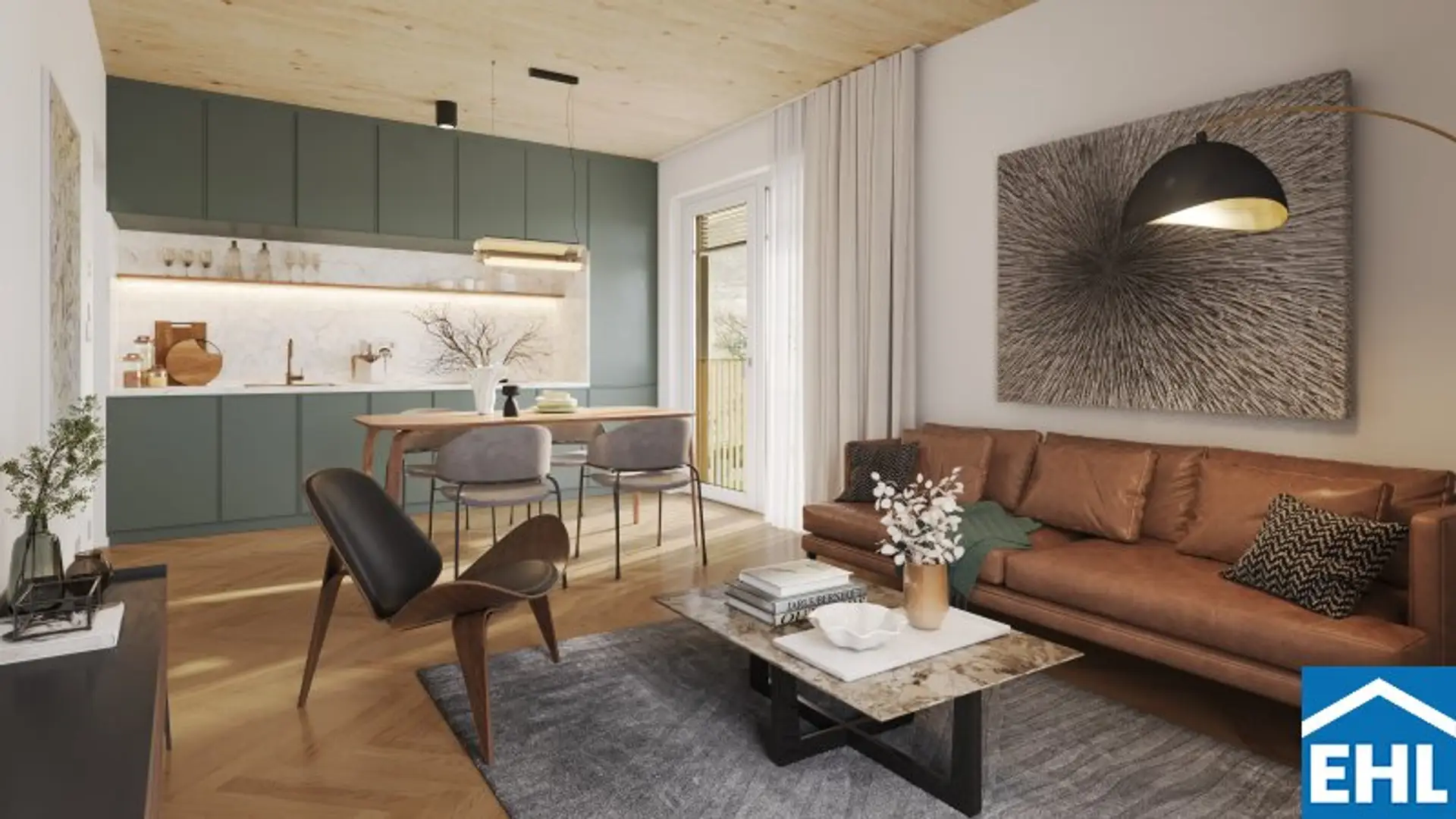 Beim Kauf einer 3- oder 4-Zimmerwohnung kann ein Kfz-Stellplatz in der hauseigenen Tiefgarage um € 44.000,- erworben werden.