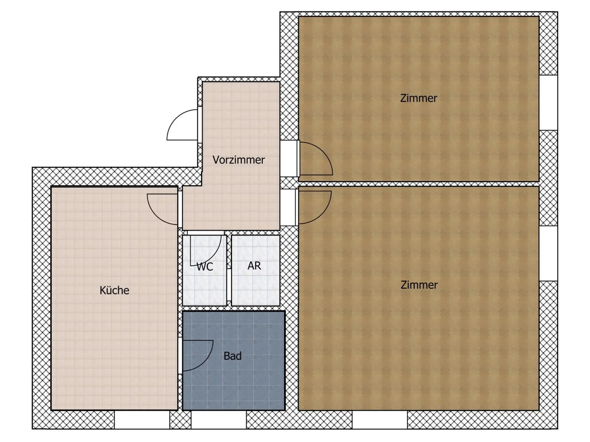 Die Wohnung hat ca. 66m² und besteht aus einem Vorzimmer, 2 Zimmer, Küche, Abstellraum, sowie Bad mit Dusche und extra WC.