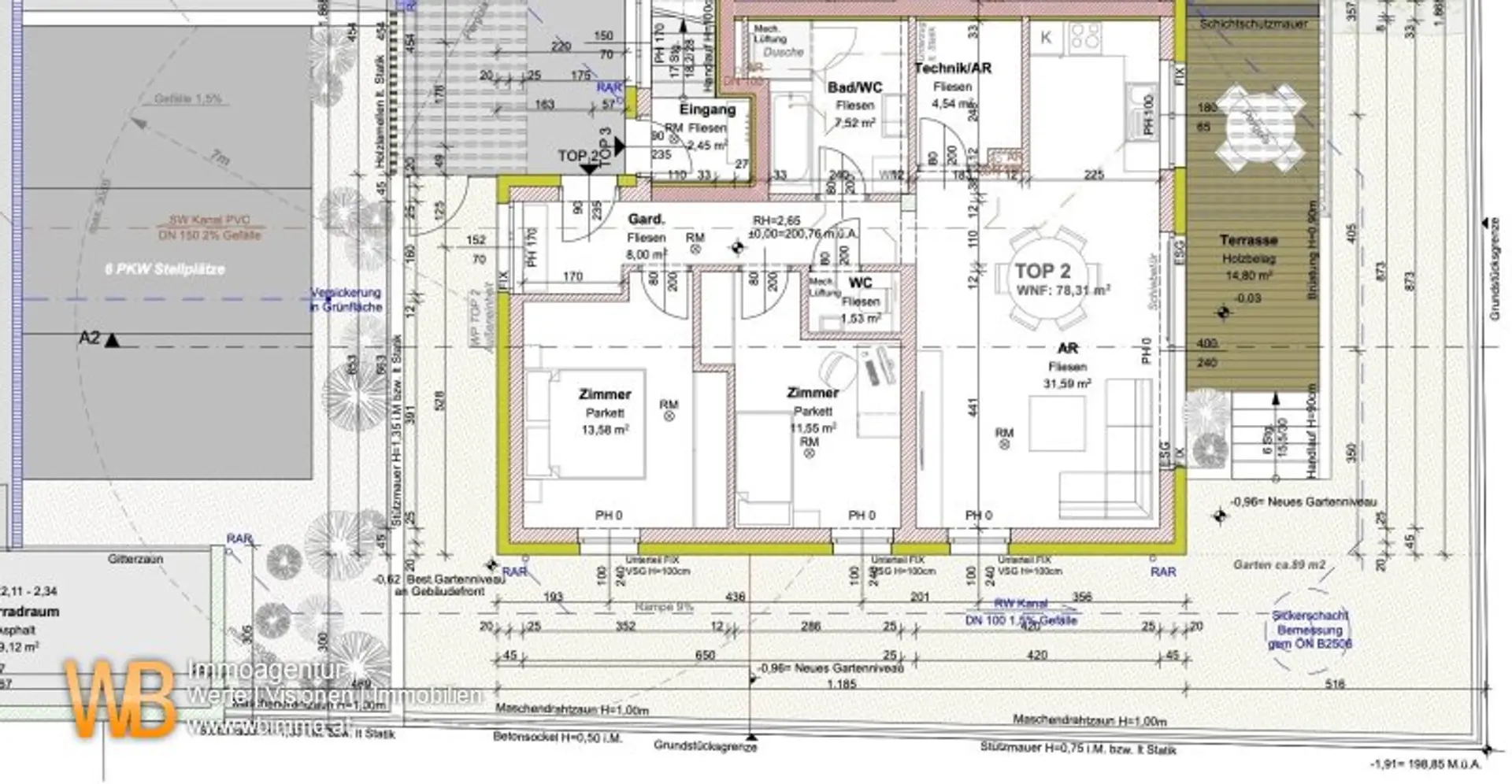 Kaufpreis belagsfertig 3 Zimmer 78,31 m², Garten ca. 89 m², Terrasse 14,80 m² - € 349.000, -