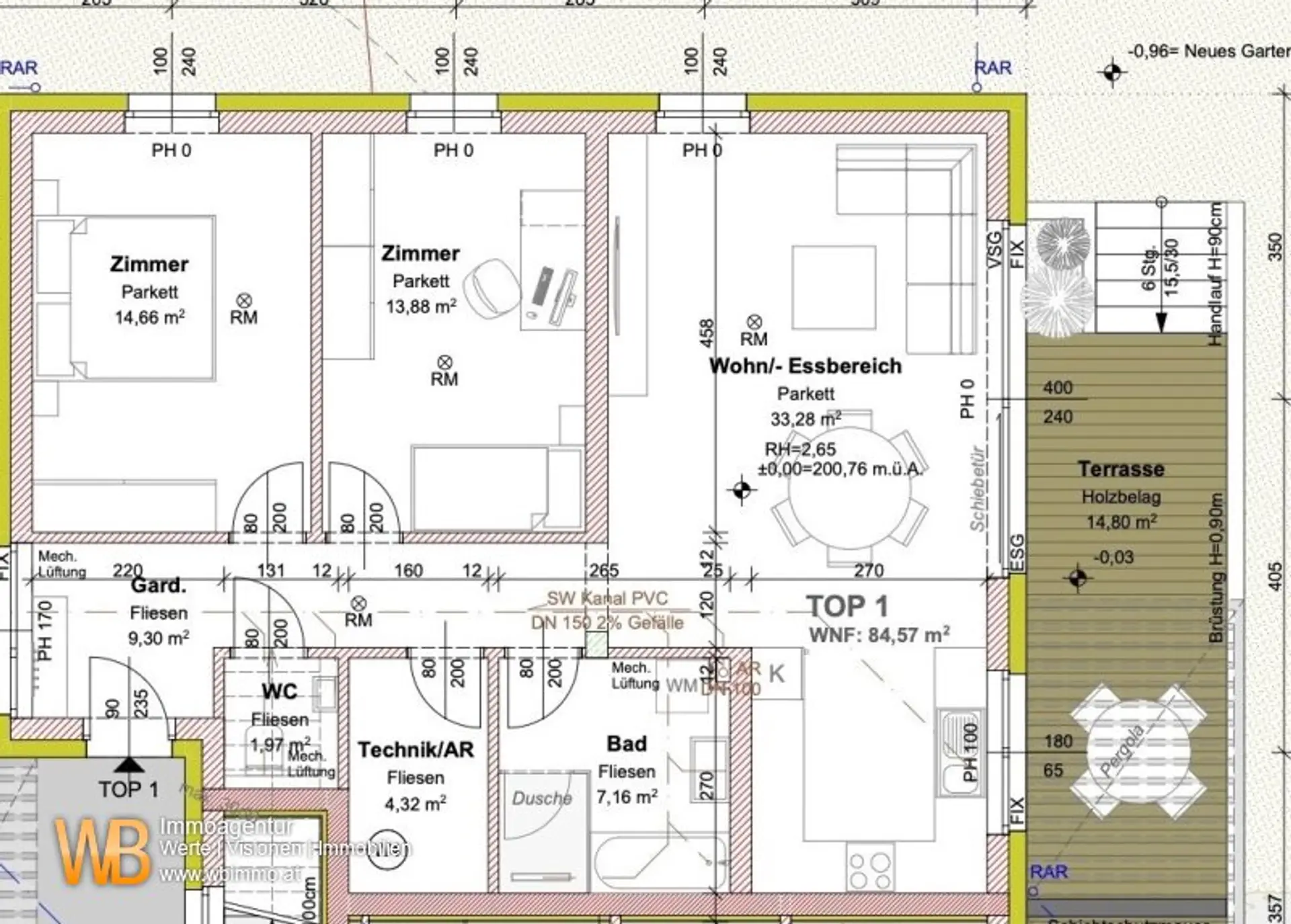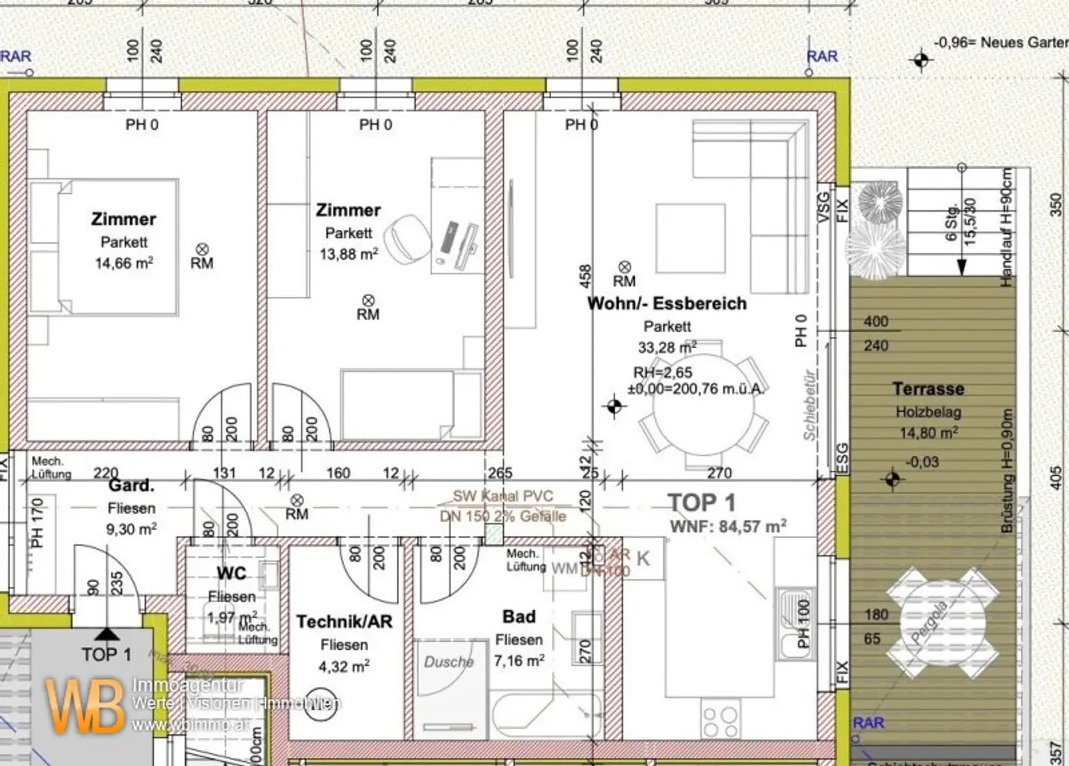 Kaufpreis belagsfertig 3 Zimmer 84,57 m², Garten ca. 109 m², Terrasse 14,80 m² - € 349.000, -