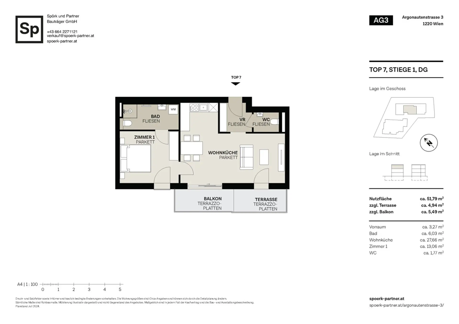 Klarheit und Offenheit prägen diese Wohnung. Die Wohnküche öffnet sich großzügig zur Terrasse, Licht fällt von zwei Seiten herein und schafft eine luftige Atmosphäre. Das Schlafzimmer liegt geschützt und ruhig, Bad und Stauraum sind funktional integriert. Kompakt, praktisch und zeitgemäß – so präsentiert sich ein Zuhause, das auf die heutigen Bedürfnisse zugeschnitten ist.