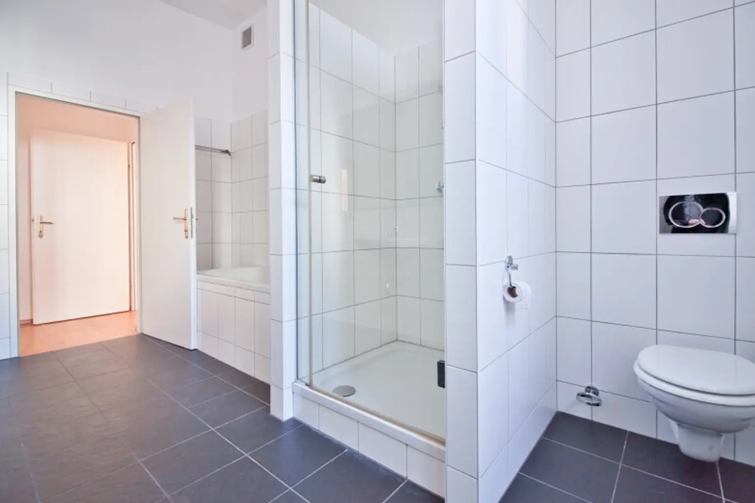 * Bad mit Badewanne, Dusche, 2 Waschtischen, WC & Fenster