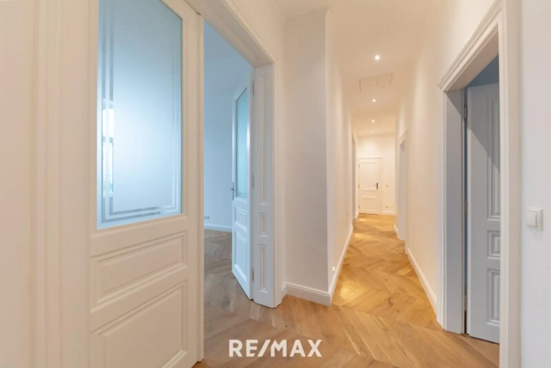 Die charakteristischen Elemente der Jahrhundertwende-Architektur – hohe Räume, Fischgrätparkett, Flügeltüren – sind teilweise erhalten und unterstreichen den einzigartigen Stil des Hauses.