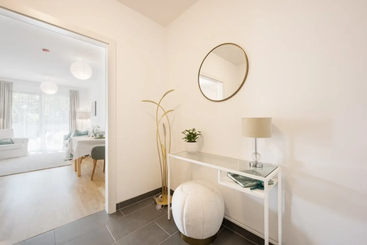 * Der Vorraum und der Sanitärbereich (Bad mit WC) verfügen über einen hellen Fliesenbelag
